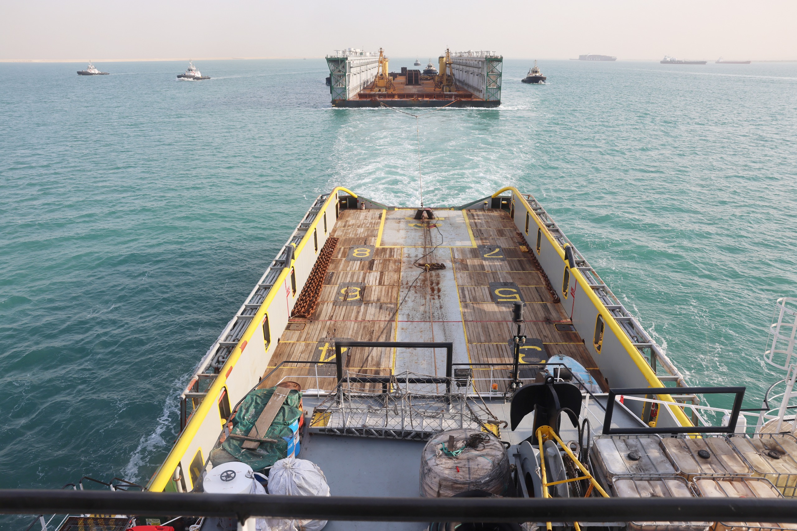 مقطورا عبر القناة 24 ساعة، وتطلب عبوره اتخاذ تدابير ملاحية خاصة نظراً لكونه من الوحدات غير ذاتية الدفع، حيث تمت عملية التأمين الملاحي بواسطة 4 قاطرات تابعة للهيئة.