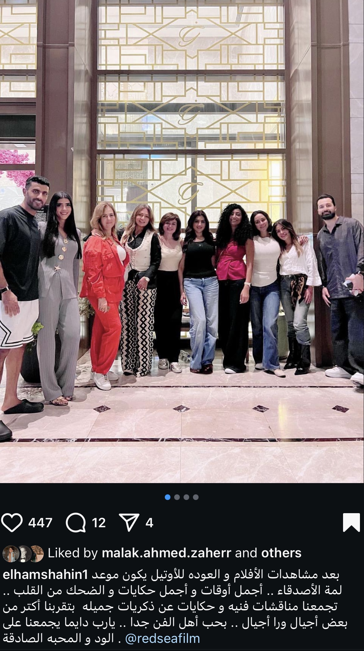 نشرت إلهام شاهين صور عبر حسابها الشخصي بموقع إنستجرام تجمعها بزملائها وعلقت عليها قائلة: “بعد مشاهدات الأفلام و العودة للأوتيل يكون موعد لمة الأصدقاء، أجمل أوقات و أجمل حكايات و الضحك من القلب”.