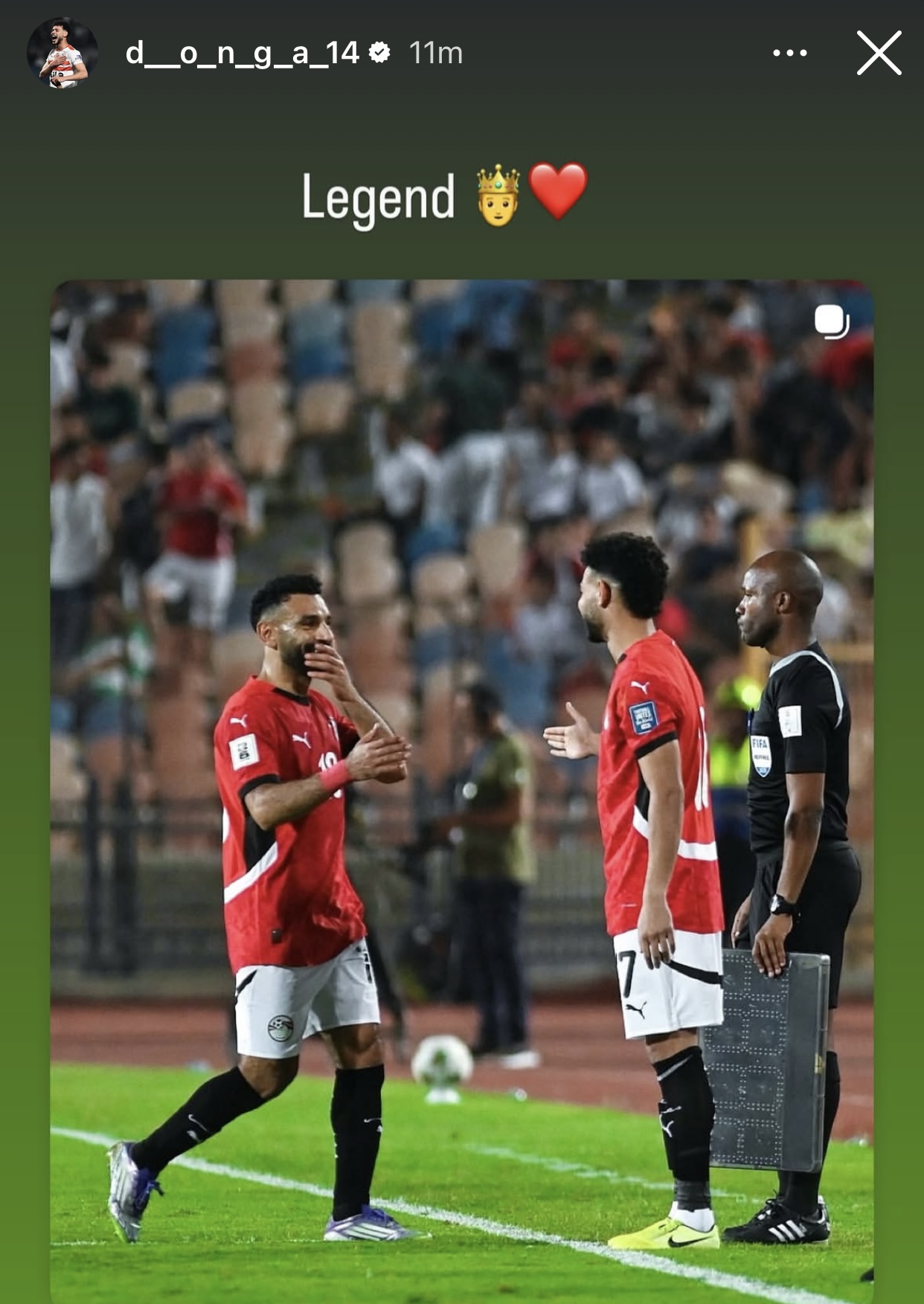 ونشر دونجا ، صورة تجمعه بصلاح عبر حسابه الشخصي بموقع إنستجرام وعلق عليها قائلاً: “الأسطورة”.