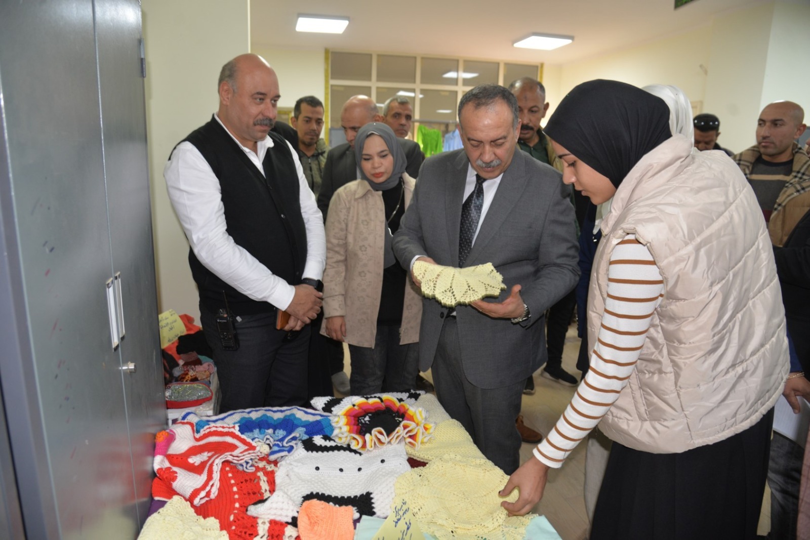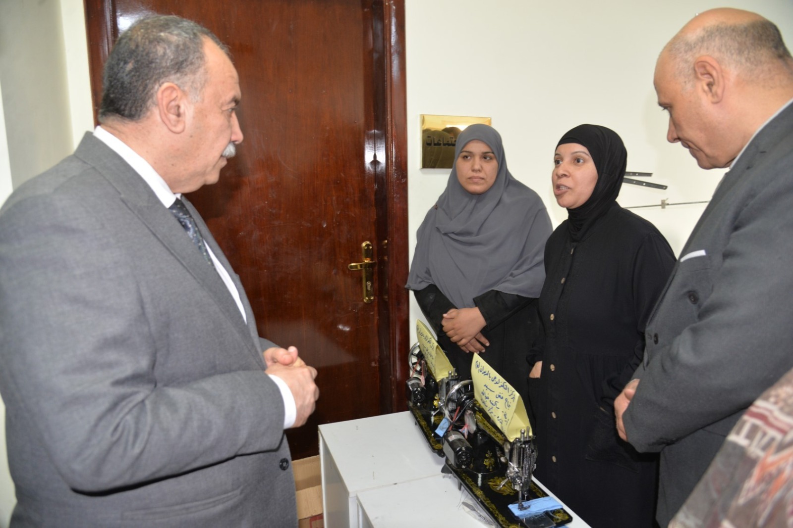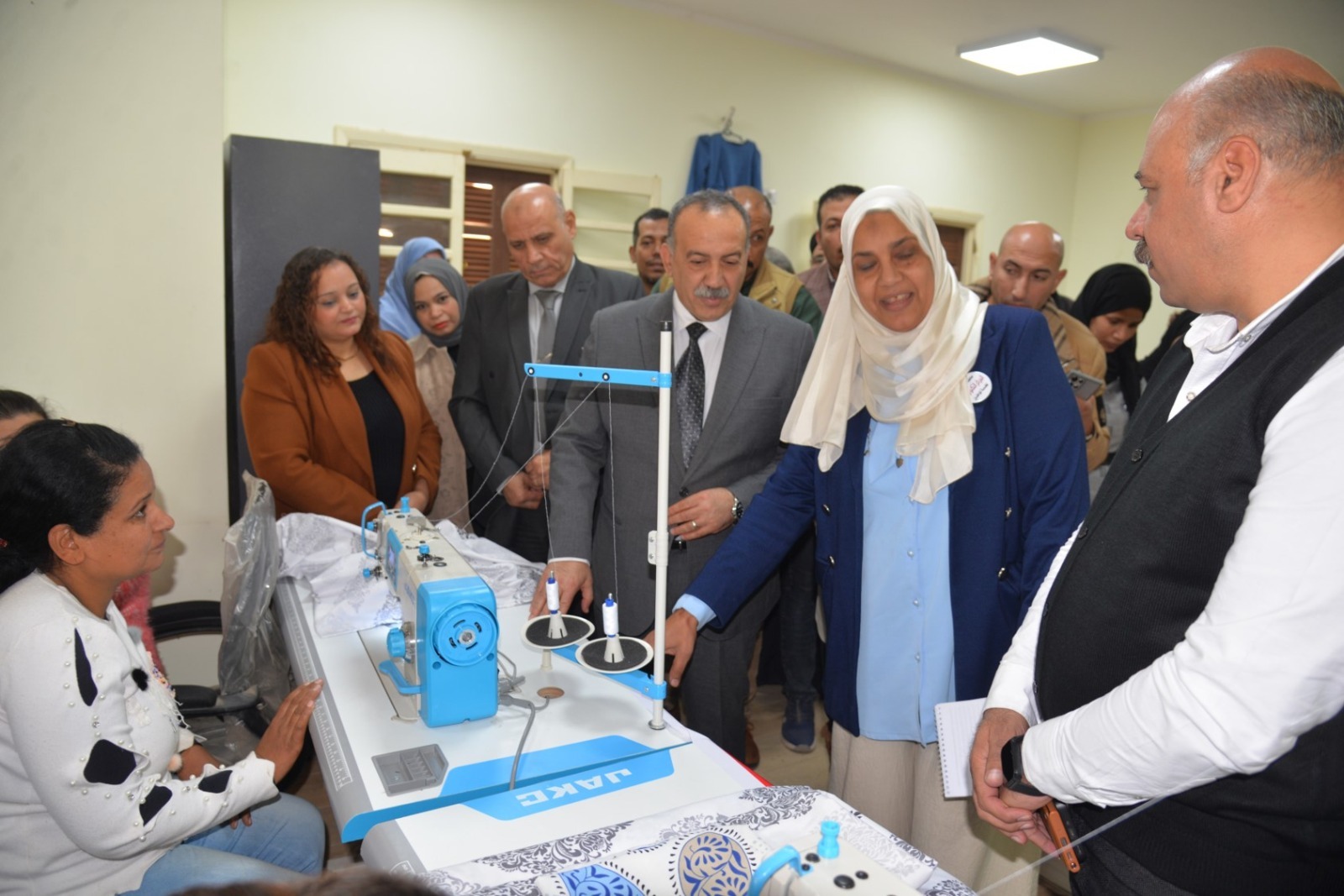 وخلال جولته داخل الورشة، اطمأن المحافظ على توافر الخامات اللازمة وسير العملية الإنتاجية، موجهًا بسرعة التعامل مع أي معوقات قد تظهر لضمان تحقيق أقصى استفادة للأهالي ورفع جودة المخرجات.