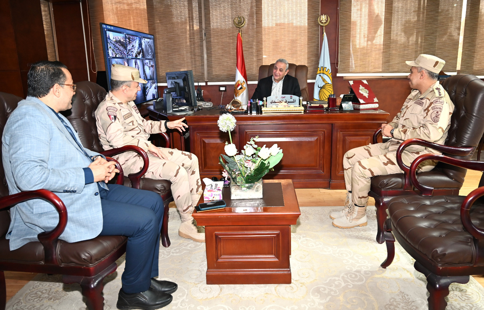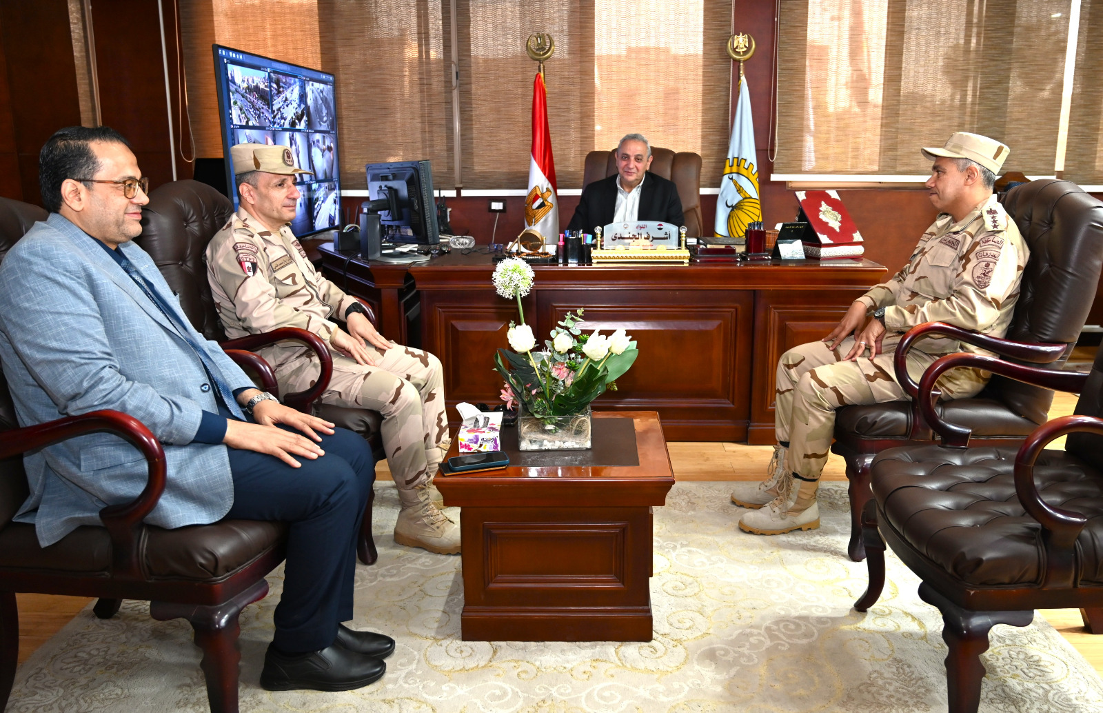 استقبل اللواء أشرف الجندي، محافظ الغربية، اليوم، العميد أركان حرب أحمد محمد صبري، مساعد قائد قوات الدفاع الشعبي والعسكري لقطاع التفتيش، والعميد أركان حرب وائل محمد فتحي، المستشار العسكري لمحافظة الغربية، والأستاذ ناصر حسن، وكيل وزارة التربية والتعليم بالغربية، في إطار متابعة مسابقة أفضل مدرسة بتأسيس عسكري على مستوى الجمهورية، والتي شهدت مرور لجنة التفتيش على 6 مدارس في مختلف مراكز المحافظة منذ يوم السبت وحتى اليوم.