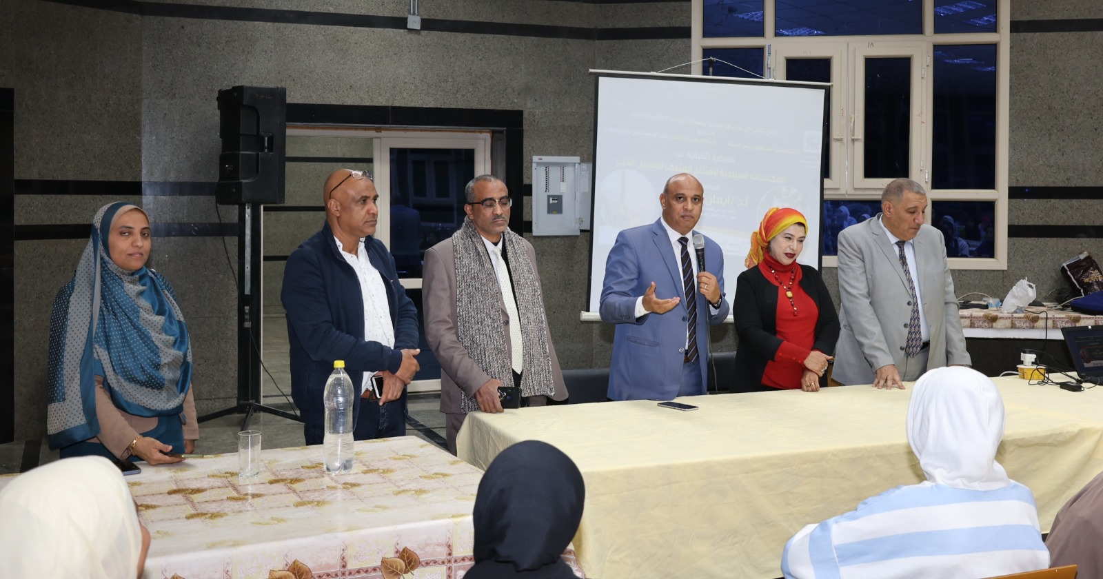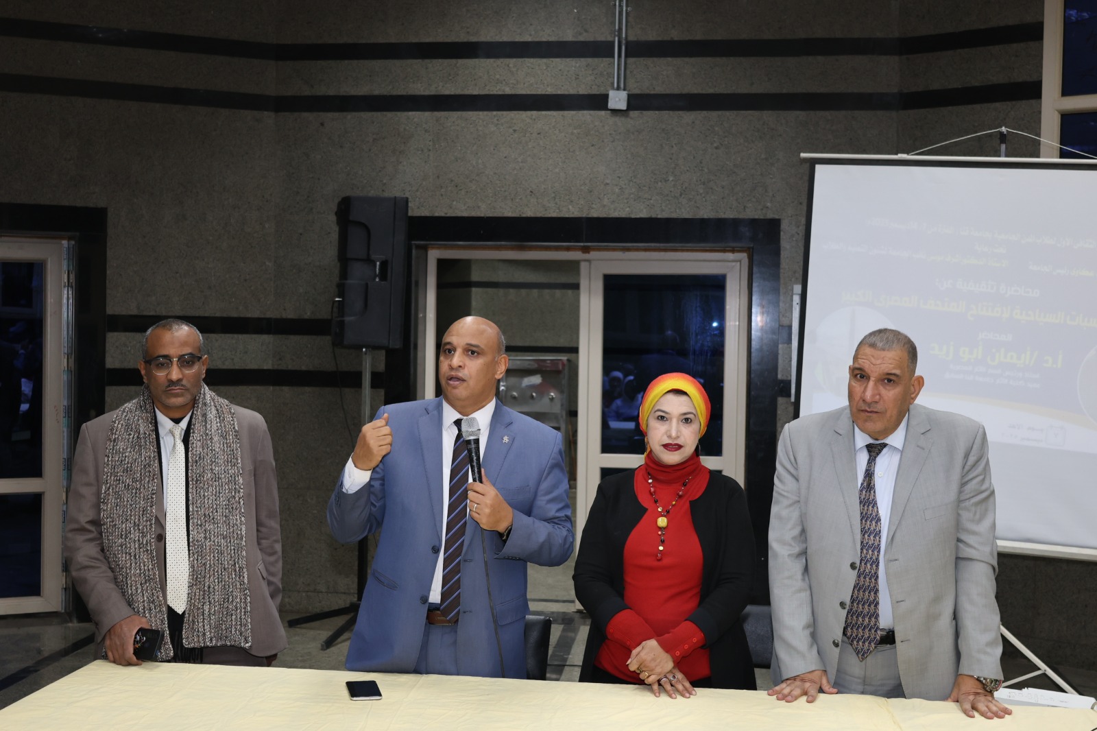 بدأت الفعالية بمحاضرة ثقافية ألقاها الأستاذة الدكتورة إيمان أبوزيد، أستاذ ورئيس قسم الآثار المصرية والعميد السابق لكلية الآثار، تناولت خلالها "المكتسبات السياحية لافتتاح المتحف المصري الكبير"، حيث ركزت على عدة محاور، منها: فكرة إنشاء المتحف واختيار موقعه ورحلة بنائه، والجولة داخل المتحف، وتهيئة المتحف لكبار السن وذوي الاحتياجات الخاصة، وأنشطة الأطفال داخل الصرح العملاق، والممشى الذي يربط المتحف بالأهرامات الثلاثة، وأخيرًا المكتسبات الناتجة عن افتتاح المتحف الكبير.