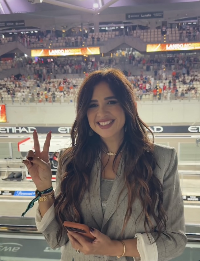 شاركت الفنانة ياسمين عبد العزيز متابعيها و جمهورها أحدث ظهور لها في إمارة أبو ظبي أثناء متابعة سباق سيارات الفورمولا .