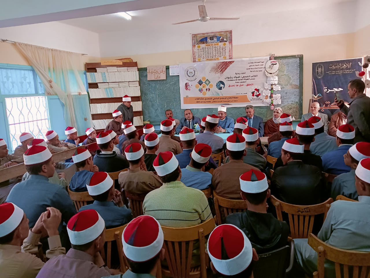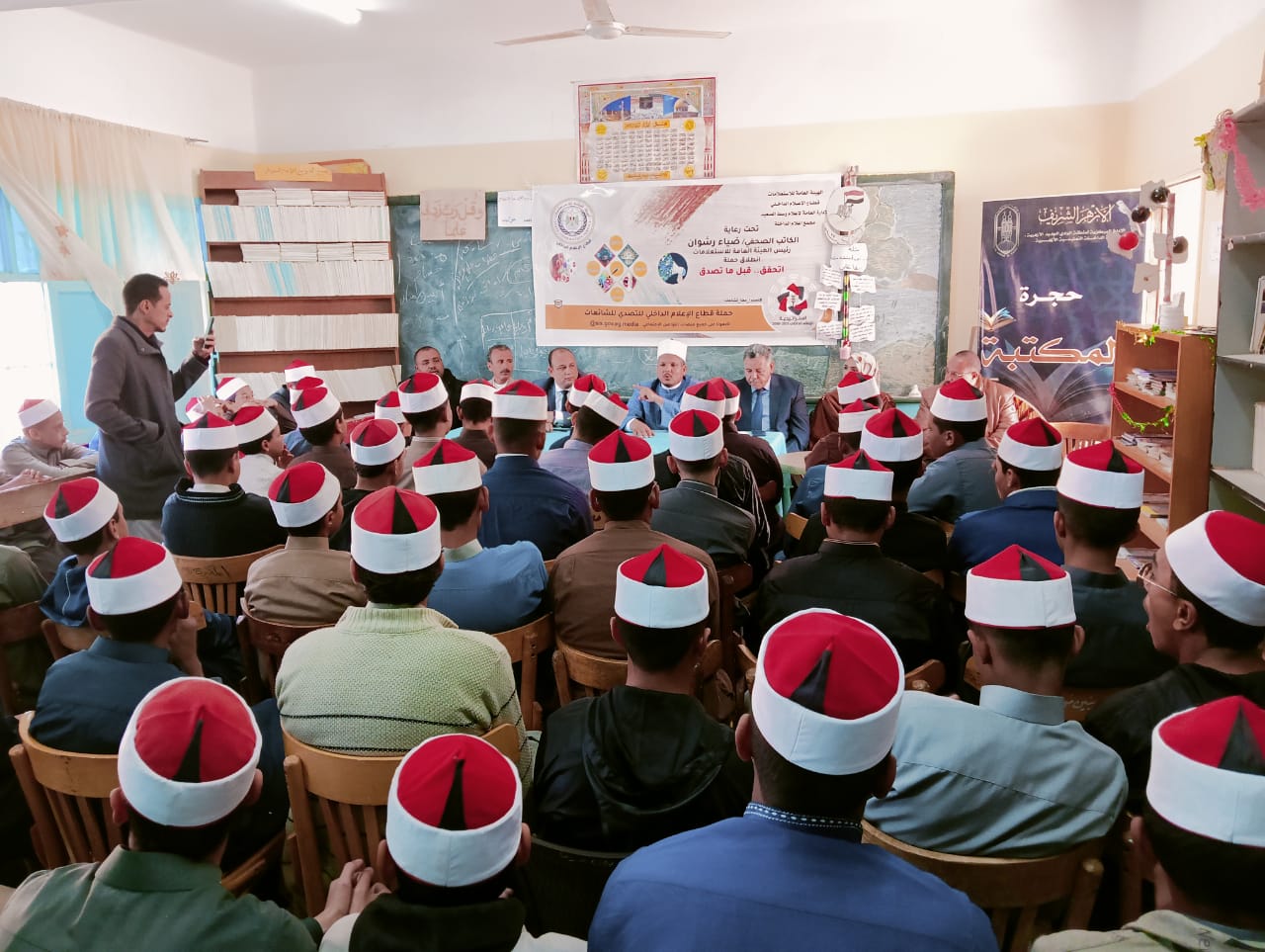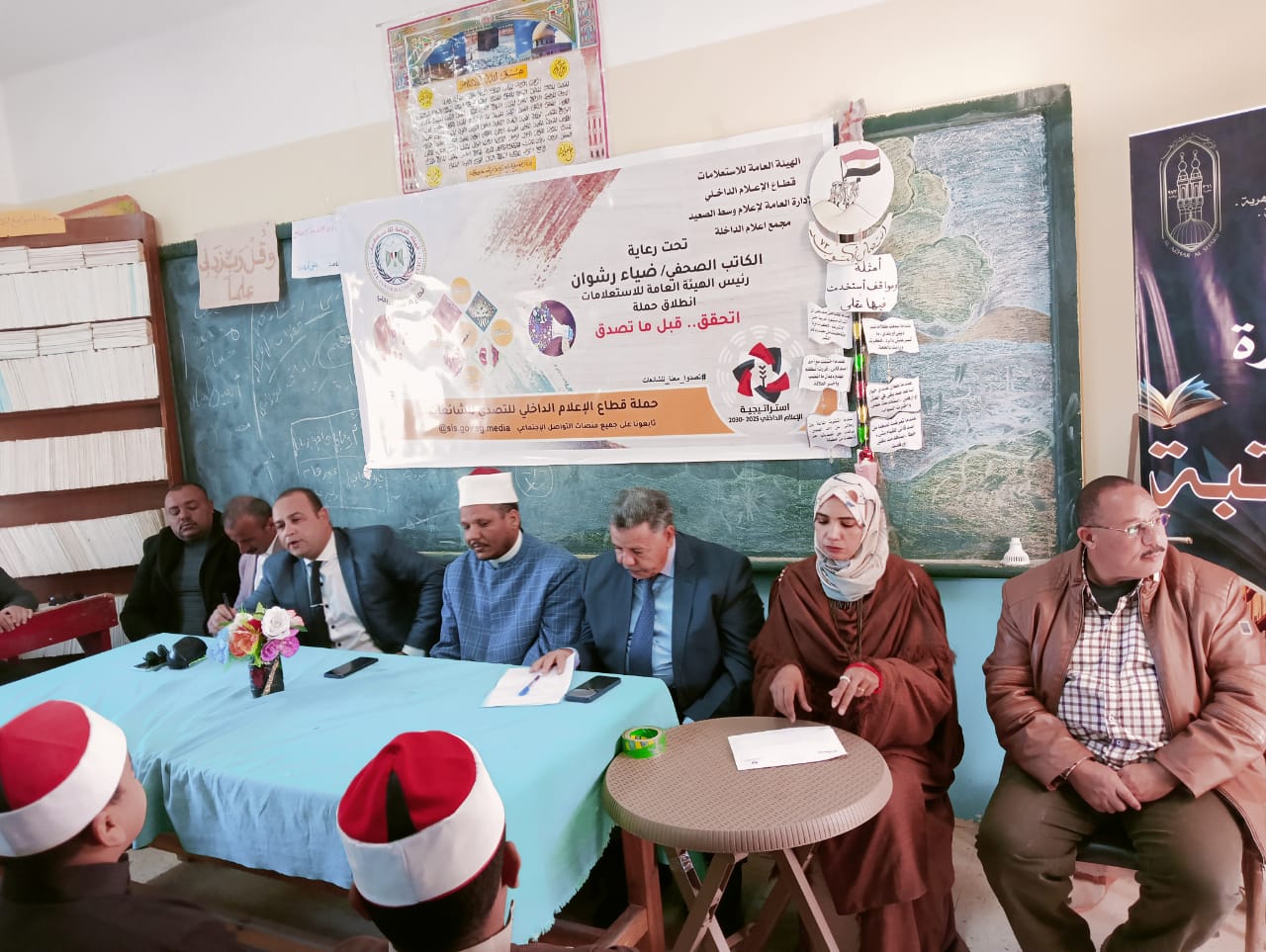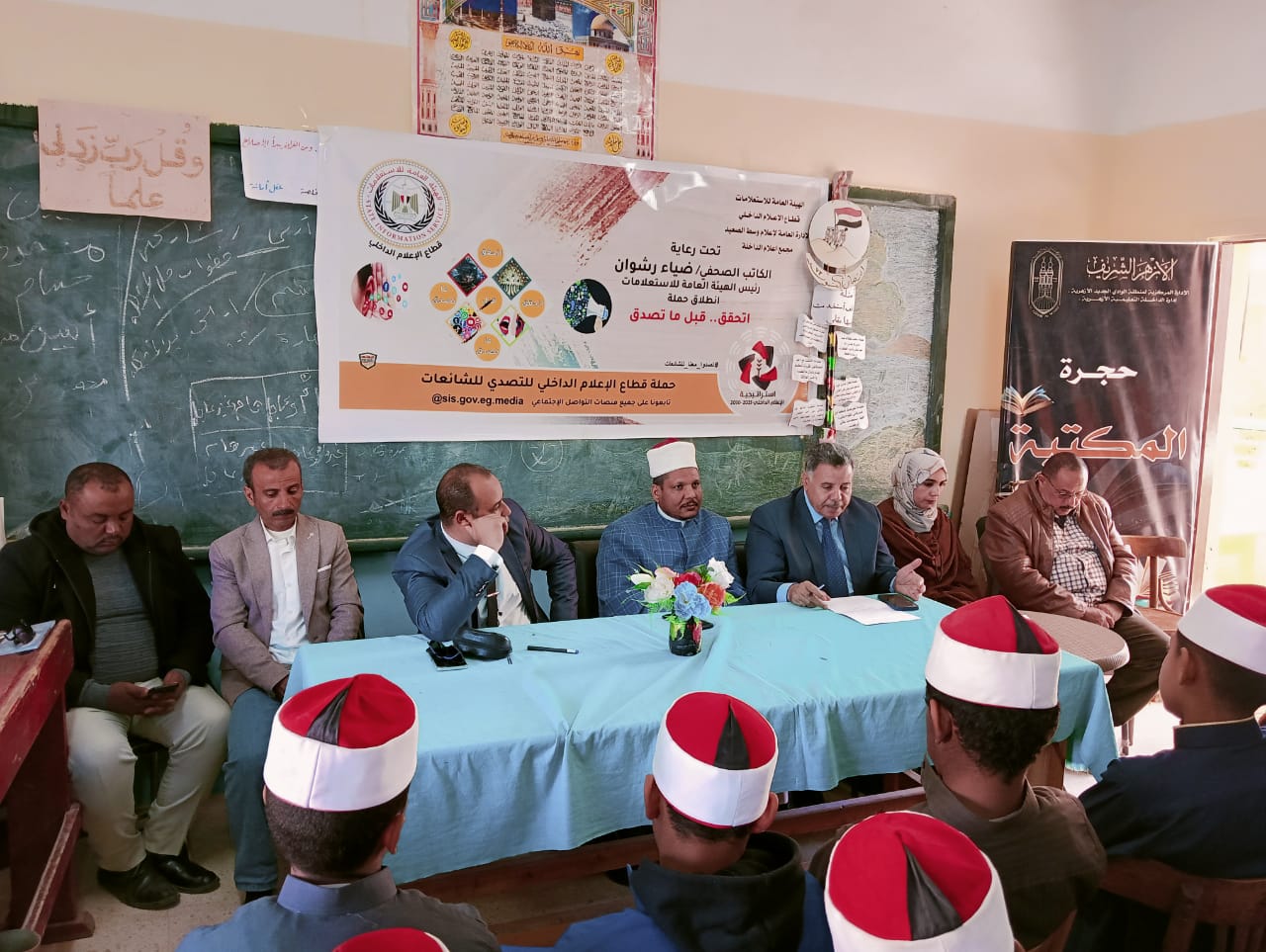 بدأ اليوم مجمع إعلام الداخلة بمحافظة الوادي الجديد تنفيذ أولى فعاليات الحملة الاعلامية الشاملة التي أطلقتها الهيئة و العامة للاستعلامات تحت شعار " اتحقق قبل ما تصدق " وذلك من خلال تنظيم حلقة نقاشية تحت عنوان " المنهج الإسلامي في التصدي للشائعات وبناء الوعي المجتمعي لمواجهتها " بمقر المعهد الأزهري بنين بالداخلة.