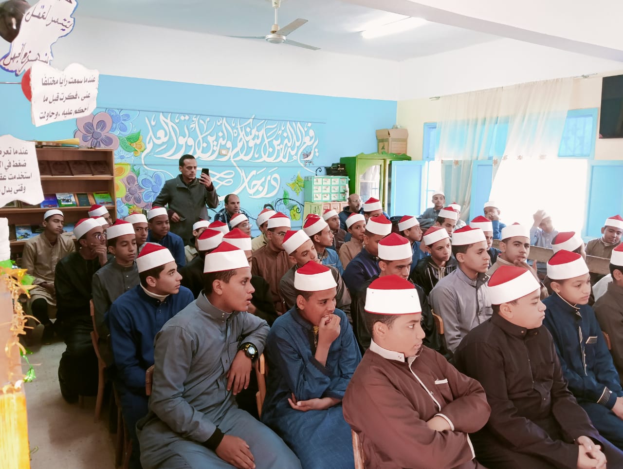 حاضر في اللقاء التثقيفي مدير عام إدارة التعليم الأزهري بمركز الداخلة الشيخ محمد سيد الزهري في حضور مدير معهد الداخلة الأزهري بنين الشيخ عبد الباسط إبراهيم ، والمنسق الاعلامي لإدارة التعليم الأزهري عادل سيف ، و أئمة وخطباء ، وطلاب وأعضاء هيئة التدريس بالمعهد .