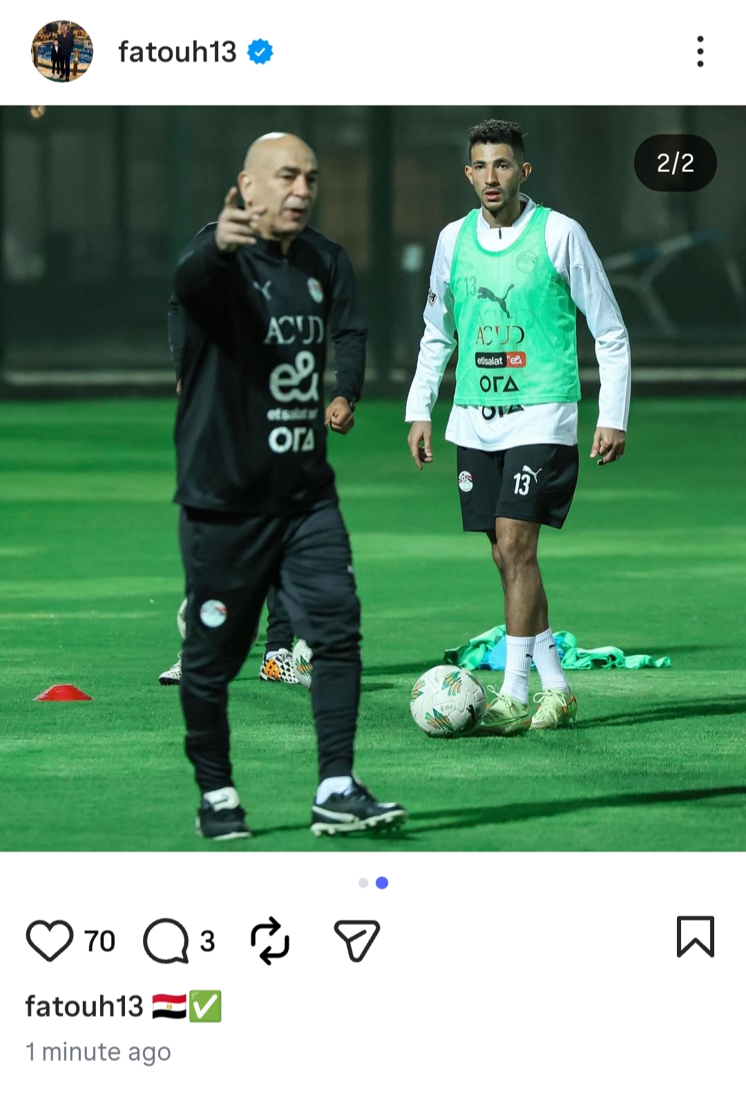 وشارك أحمد فتوح صورا من التدريبات برفقة حسام حسن عبر حسابه الشخصي بموقع التواصل الاجتماعي إنستجرام.
