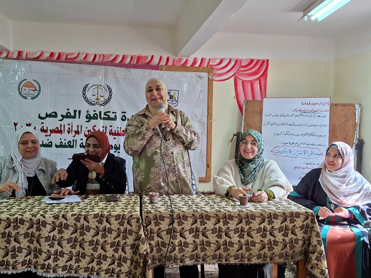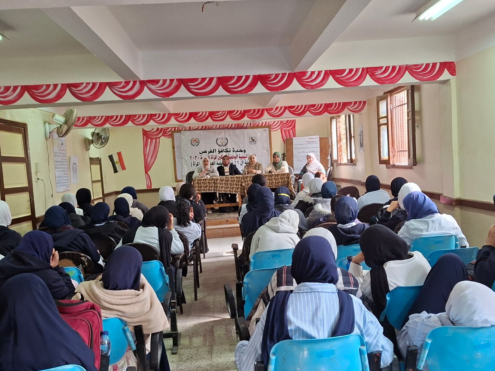 الواعظة آية أحمد عبد التواب بمديرية الأوقاف ، نيفين محمد ممدوح مديرة المدرسة ، مها طلعت منسق تكافؤ الفرص بالإدارة ، سحر صالح و أميرة عبد الرؤوف الأخصائيتان الاجتماعيتان بالمدرسة