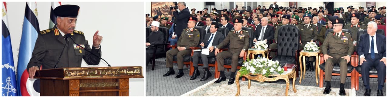 شهد الفريق أول عبد المجيد صقر القائد العام للقوات المسلحة وزير الدفاع والإنتاج الحربي مناقشة البحث الرئيسي للأكاديمية العسكرية للدراسات العليا والاستراتيجية بعنوان "إستراتيجية مقترحة لتنمية الوعى المجتمعي فى ظل التحديات والتهديدات التى تواجه الأمن القومي المصري" ، والذى نفذته كلية الدفاع الوطني، وذلك بحضور الفريق أحمد خليفة رئيس أركان حرب القوات المسلحة وعدد من الوزراء وقادة الأفرع الرئيسية وعدد من قادة القوات المسلحة ورؤساء الجامعات والإعلاميين والشخصيات العامة.