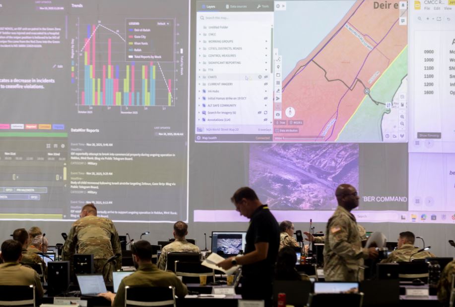 تراقب إسرائيل وتتجسس على مركز التنسيق الأمريكي المدني-العسكري في كريات جات جنوب الأراضي المحتلة.