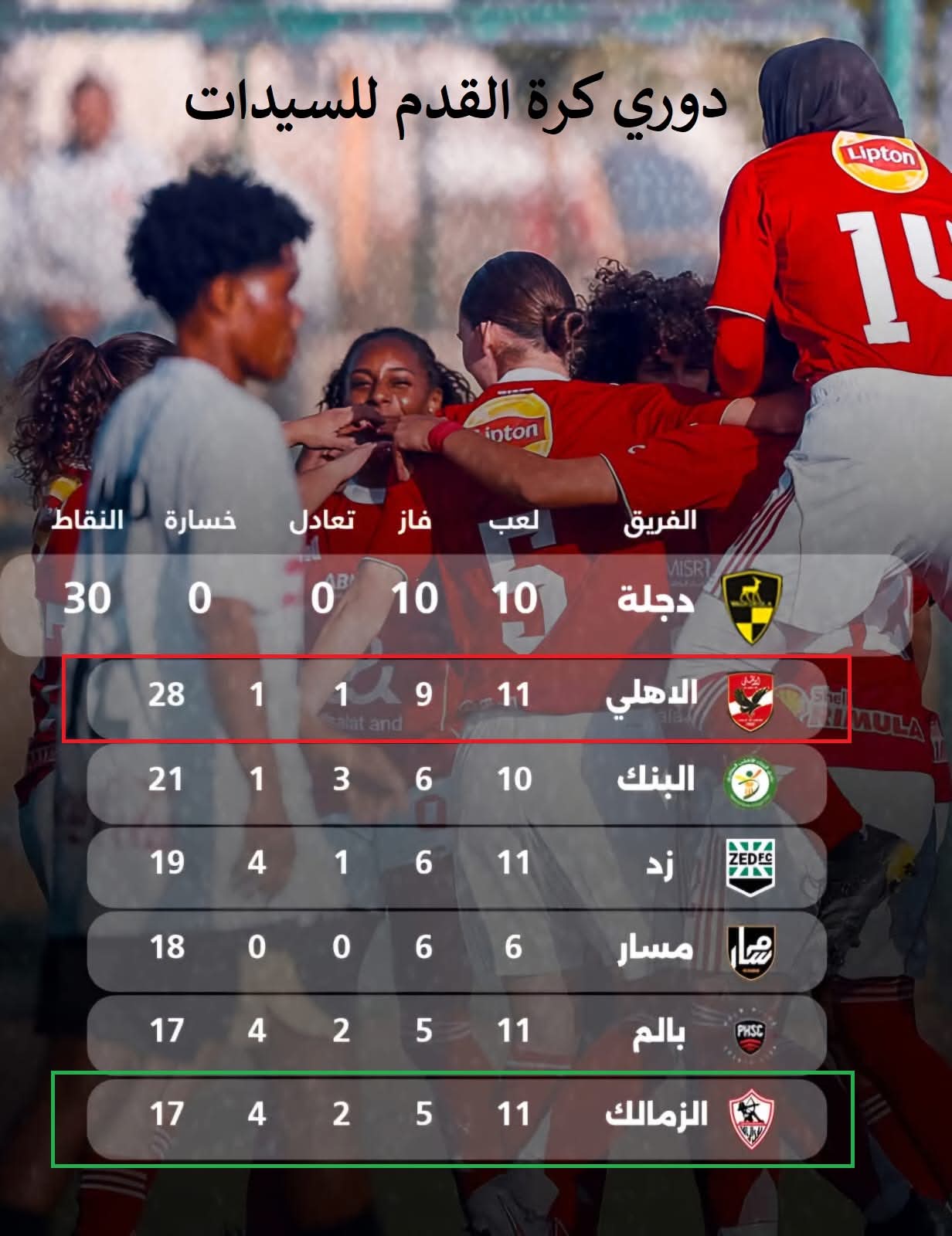 دوري كرة القدم للسيدات : الأهلي في المركز الثاني ، والزمالك في المركز السابع !!".