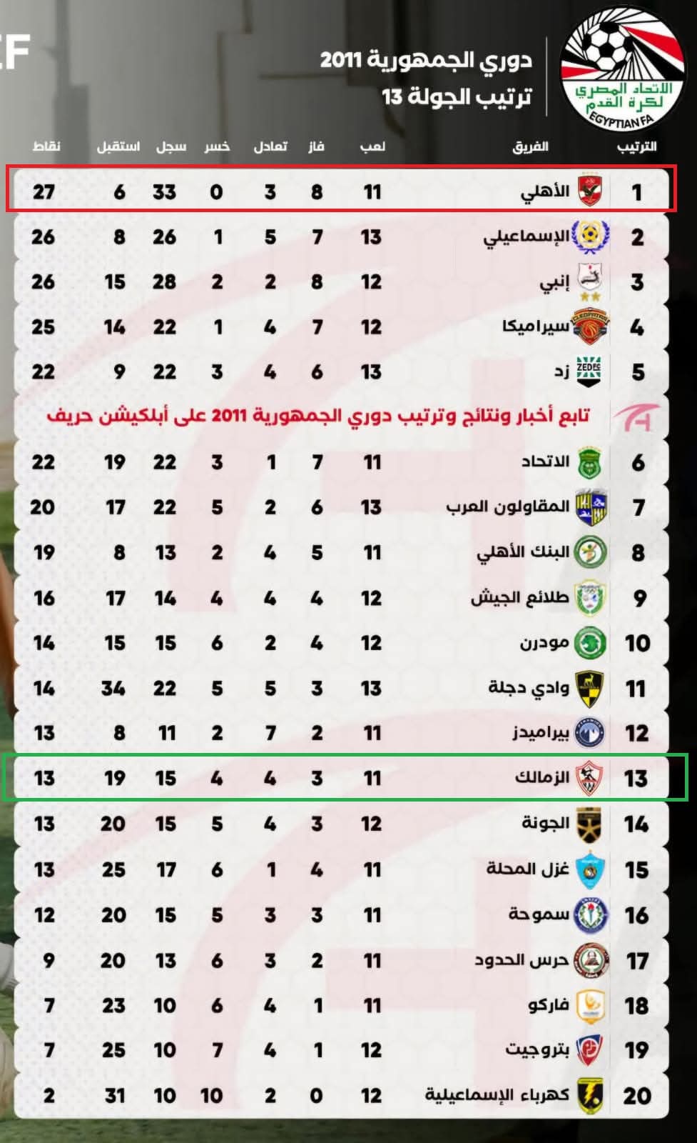 دوري 2011 : الأهلي في المركز الأول والزمالك في المركز الثالث عشر !!