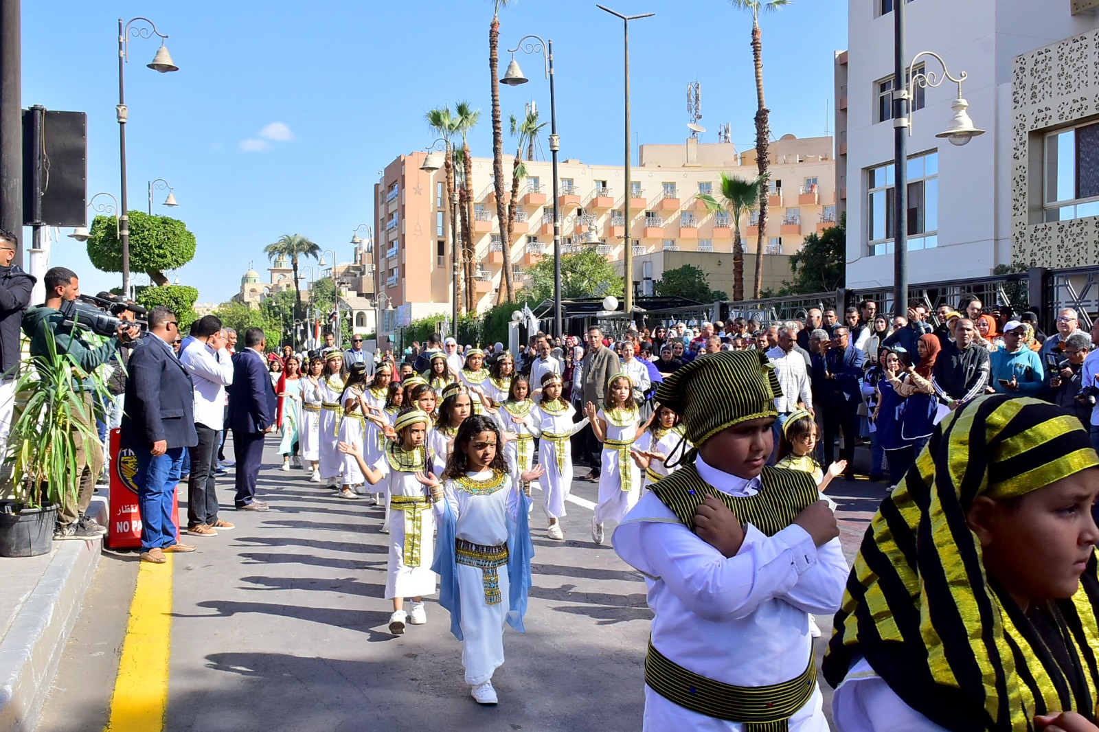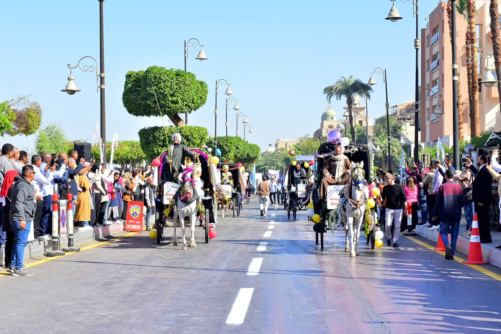 وتضمنت الاحتفالية مرور موكب عربات الحنطور المزينة يرتادها الأطفال بالزي الفرعوني والعاملين بالفنادق السياحية بالمحافظة مقدمة كتهنئة من غرفة شركات ووكالات السفر والسياحة وغرفة الفنادق بمناسبة العيد القومي للمحافظة، كما تضمنت الاحتفالية مرور علم جمهورية مصر العربية بطول ٢٥ متر، ومرور حملة الإعلام يتقدمهم علم محافظة الأقصر، كما تم تقديم عرض لفرق الكشافة والجوالة ، وعرض الموسيقى العسكري، ثم طابور جامعة الأقصر.