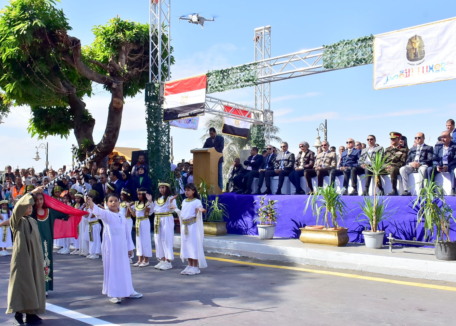 كما تم تقديم عدد من الفقرات الاستعراضية والفنية والفلكلورية بمشاركة التربية والتعليم والشباب والرياضة وقصور الثقافة، تضمنت استعراضات بالأزياء الفرعونية والصعيدية والنوبية التقليدية والتي تعبر عن الهوية المصرية، كما تم تقديم عرض لنادي التجديف والرياضات المائية بالأقصر، وعروض التنورة، وسط تفاعل كبير من جمهور المواطنين والسائحين.