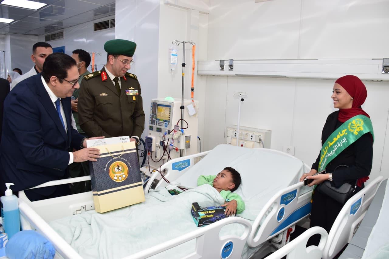 كما قام الوفد بجولة تفقدية داخل الأقسام المختلفة بالمستشفى وتقديم الدعم المعنوى للأطفال وتوزيع الهدايا العينية عليهم للمساهمة فى رسم البسمة على وجوههم .