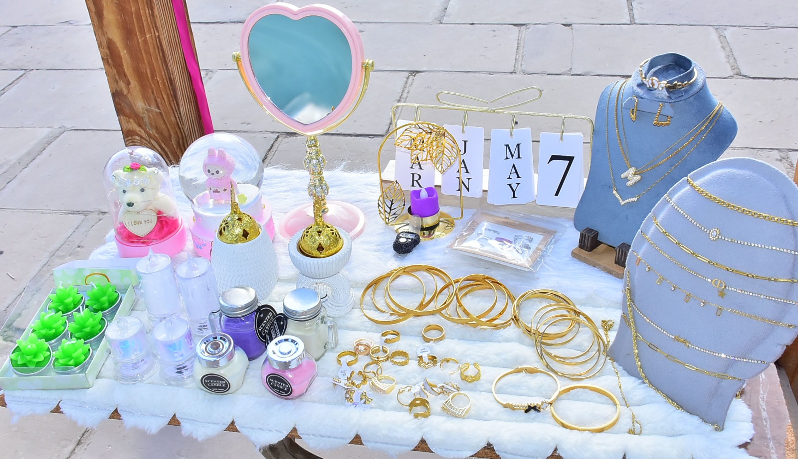 يضم المعرض منتجات متنوعة تشمل: الرمل الملون، المشغولات الخشبية، إكسسوارات، الأسمنت والجبس، معصرة زيوت وصابون طبيعي، كروشية، كانفا وتطريز يدوي، نحاس، عقيق، سجاد، جلود، أحجار كريمة، مكرمية، خوص، الباستر، الفخار، الرسومات، تجفيف خضروات، توابل، ومخبوزات وغيرها من المنتجات.