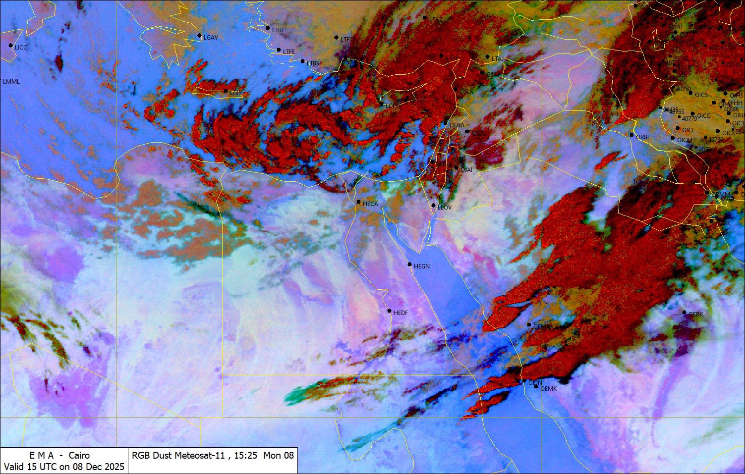 نشرت هيئة الأرصاد الجوية، صورا للأقمار الصناعية وخرائط الطقس، تشير إلى استمرار تكاثر السحب المنخفضه والمتوسطه والركامية الممطرة على مناطق من السواحل الشماليه وشمال الوجه البحرى (الأسكندرية-شمال كفرالشيخ -شمال البحيرة-دمياط).