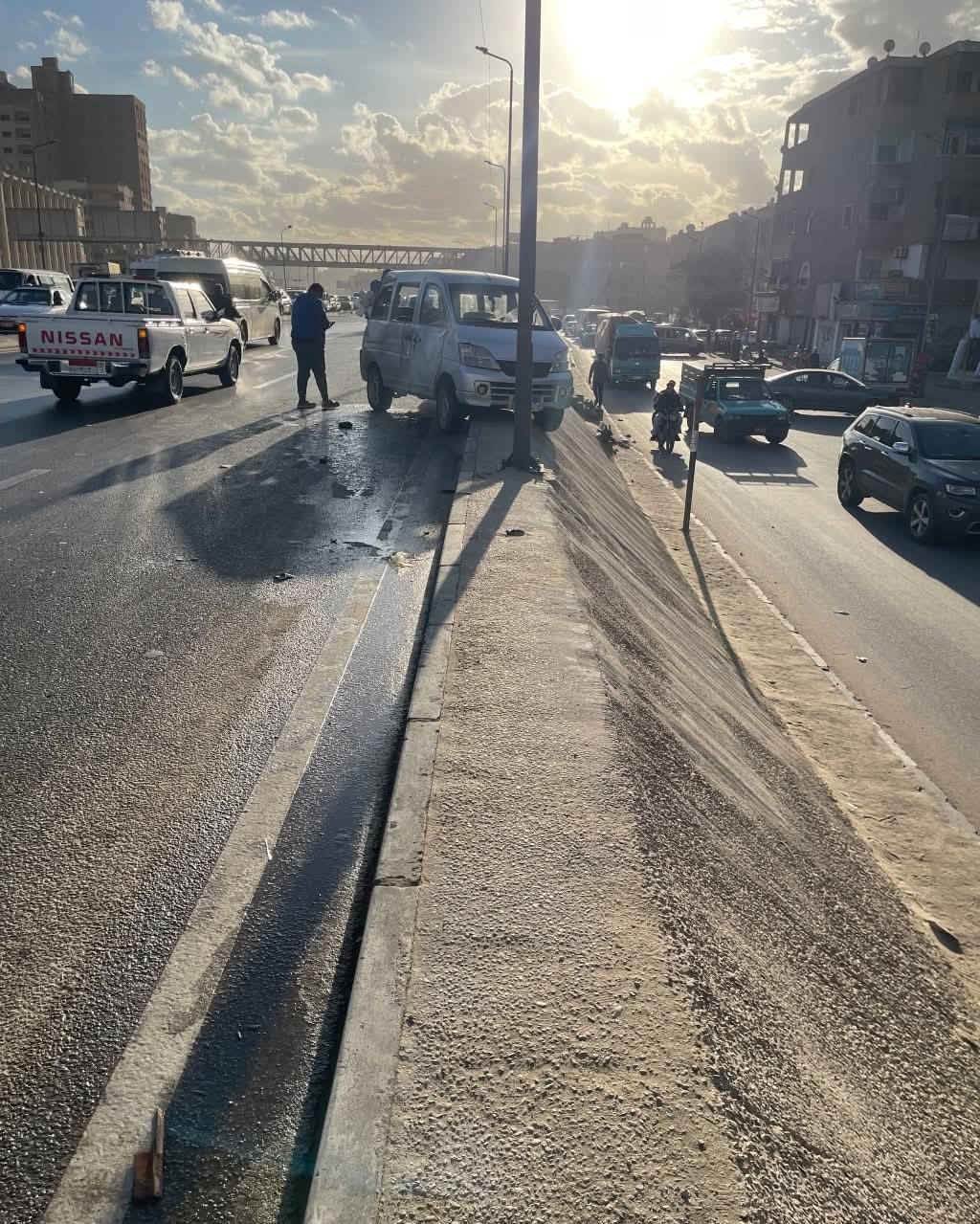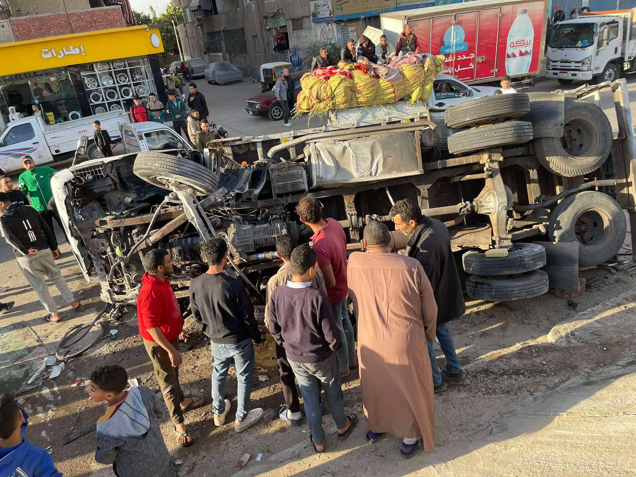 انقلاب سيارة نقل من أعلى طريق الـ 100