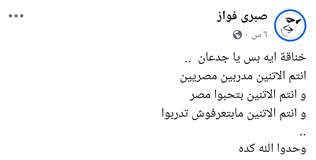 وكتب فواز عبر حسابه على فيسبوك: “خناقة إيه بس يا جدعان، انتم الاتنين مدربين مصريين، وأنتم الاتنين بتحبوا مصر وأنتم الاتنين مابتعرفوش تدربوا وحدوا الله كدة”.