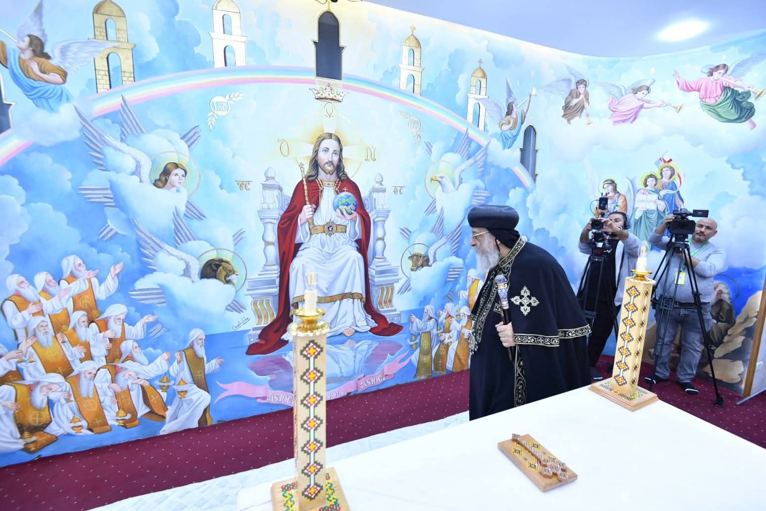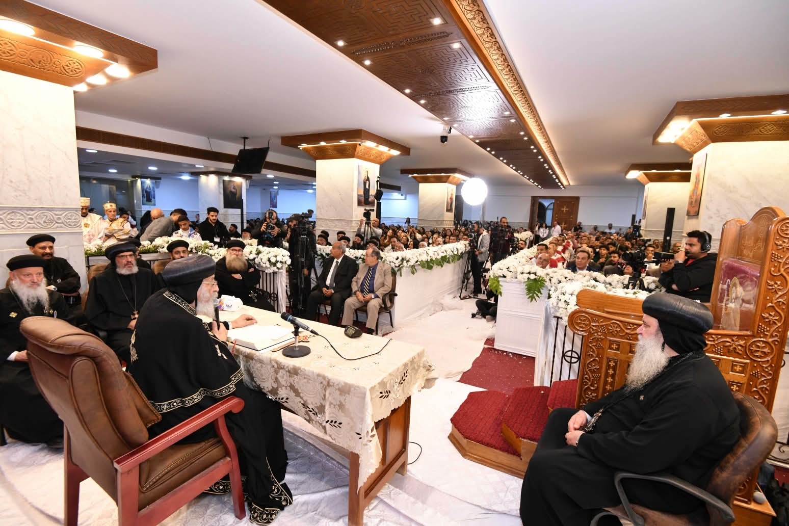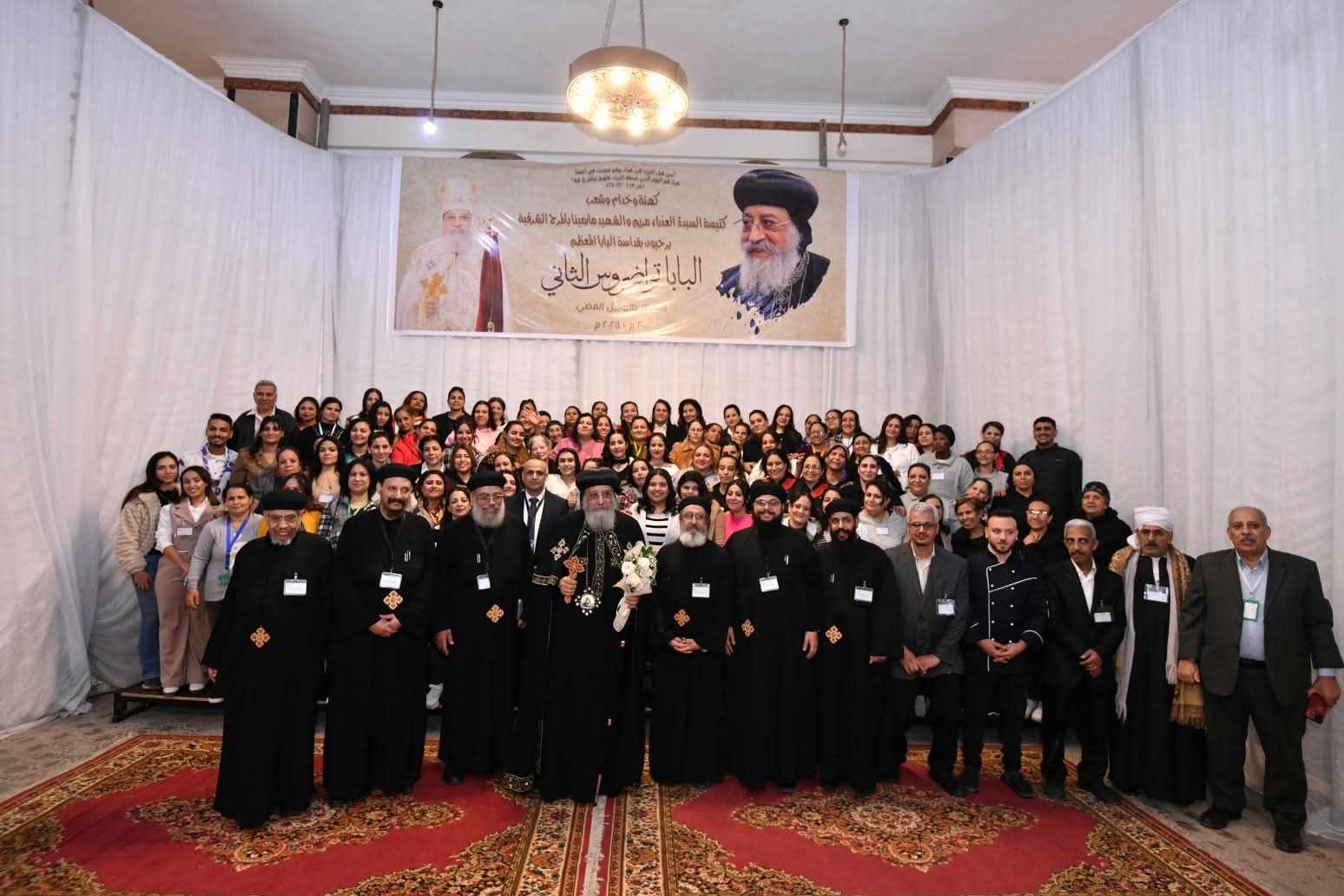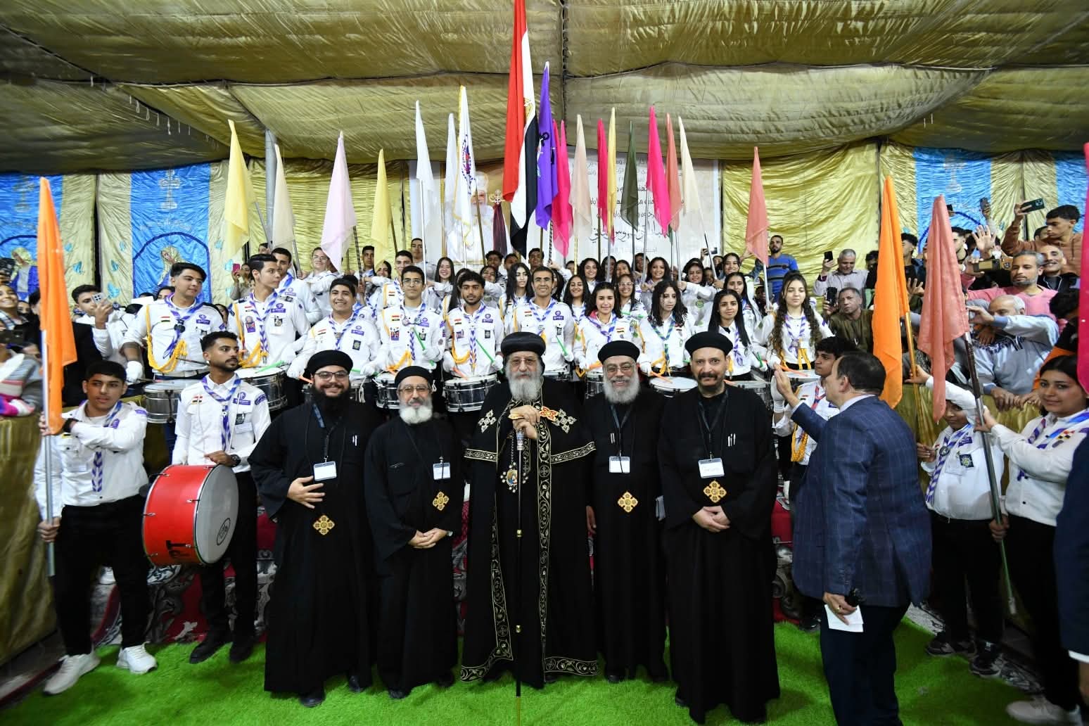 وامتلأ السرادق المقام في الساحة أمام الكنيسة بفريق الكشافة والمئات من أبناء الكنيسة، حيث اُستُقبِل قداسته لدى وصوله، بحفاوة بالغة من قبلهم، وعلت أصواتهم بكلمات الترحيب والمحبة، وحرص قداسته على مبادلتهم التحية.