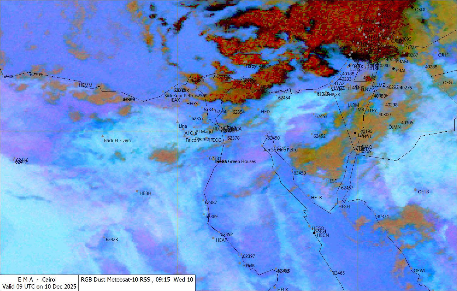 - الظواهر: أمطار خفيفة على مناطق جنوب سيناء.