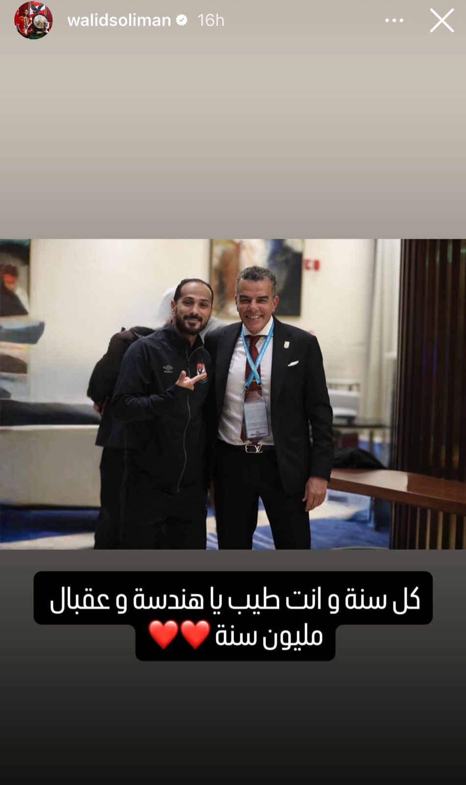 وجه وليد سليمان، نجم الأهلي السابق، رسالة لخالد مرتجي، أمين صندوق النادي الأهلي عبر حسابه الشخصي على موقع التواصل الاجتماعي انستجرام.