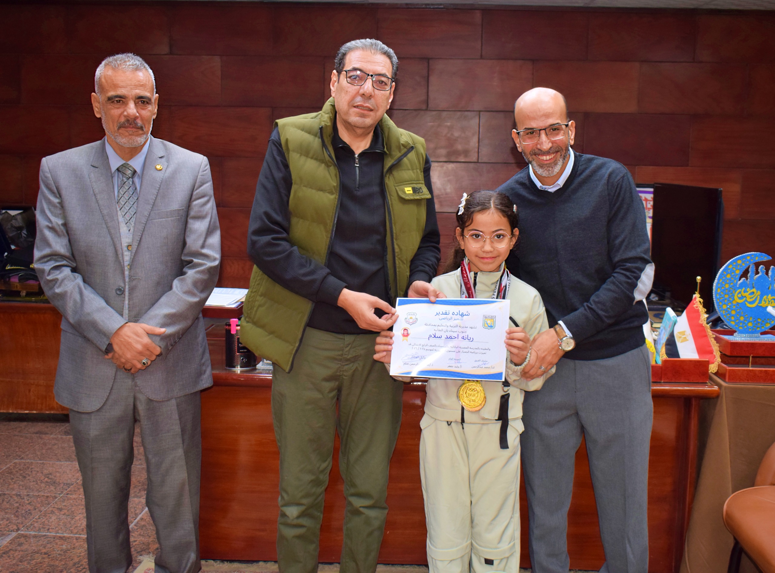 وشهد الاحتفالية النائب أحمد سلام مدخل عضو مجلس الشيوخ، ووليد جعفر الموجّه العام للتربية الرياضية بالمديرية، والمهندس كريم الخطيب مدير أكاديمية «تربل إس»، ومحمد عبد الرحمن المدير الفني، ومصطفى الشاذلي وهايم أحمد مدربين بالأكاديمية.