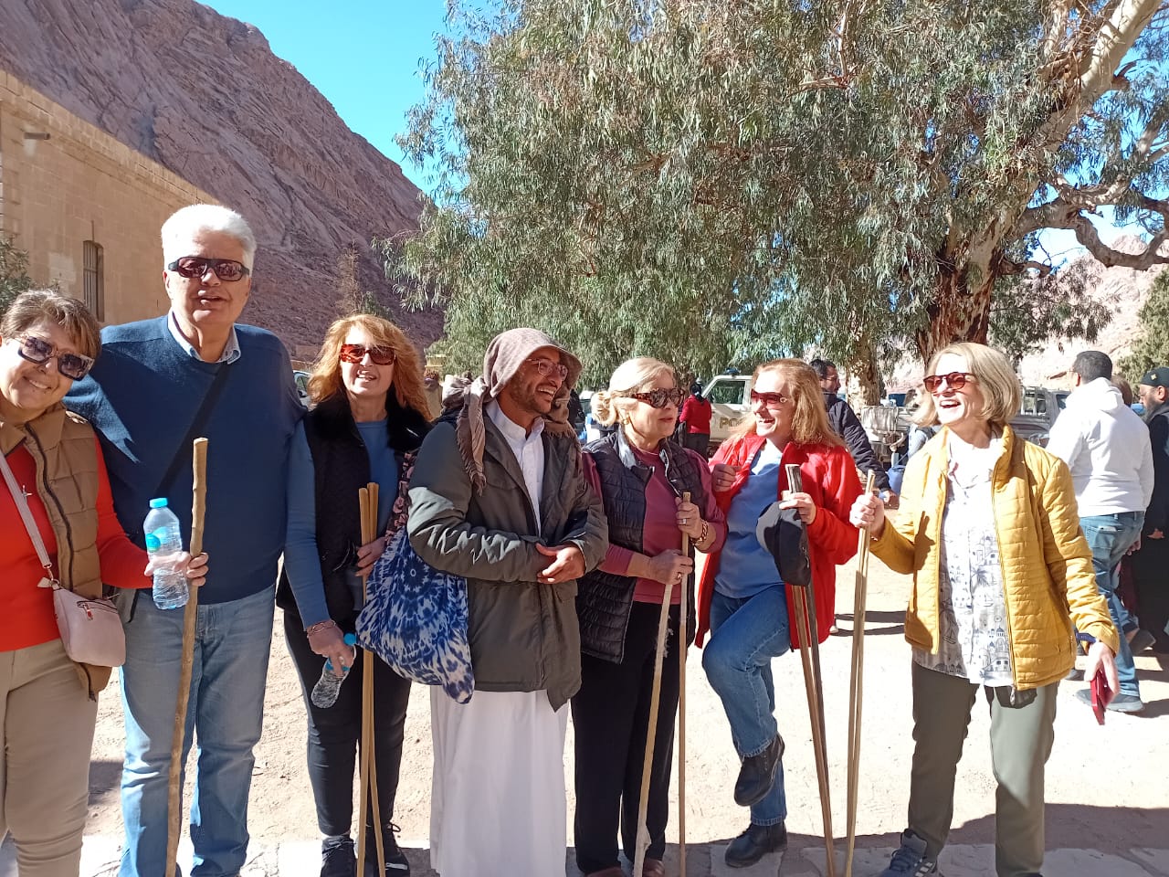 حاكى عدد من السياح اليونانيين، مشهد صعود نبي الله موسى إلى جبل موسى، مستخدمين عصيًا مصنوعة من جريد النخيل في تقليد رمزي يرتبط بتاريخ المكان وقدسيته. ورصدت كاميرا موقع «صدى البلد» السياح وهم يحملون عصيّ الجريد أثناء صعودهم إلى موقع أحد القديسين اليونانيين على الجبل.
