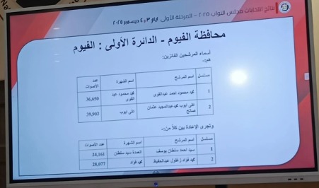 الدائرة الأولى – مركز الفيوم: فاز كل من محمد محمود عبد القوي وعلي أيوب.