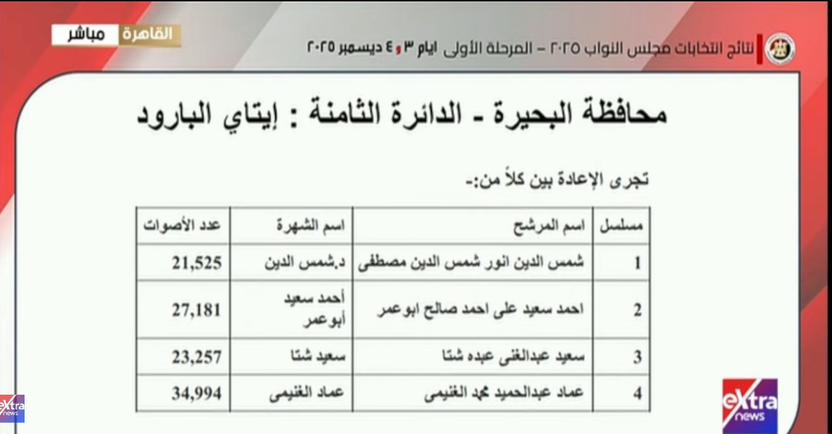 الدائرة الثامنة – مركز إيتاي البارود، 39 مرشحًا على مقعدين