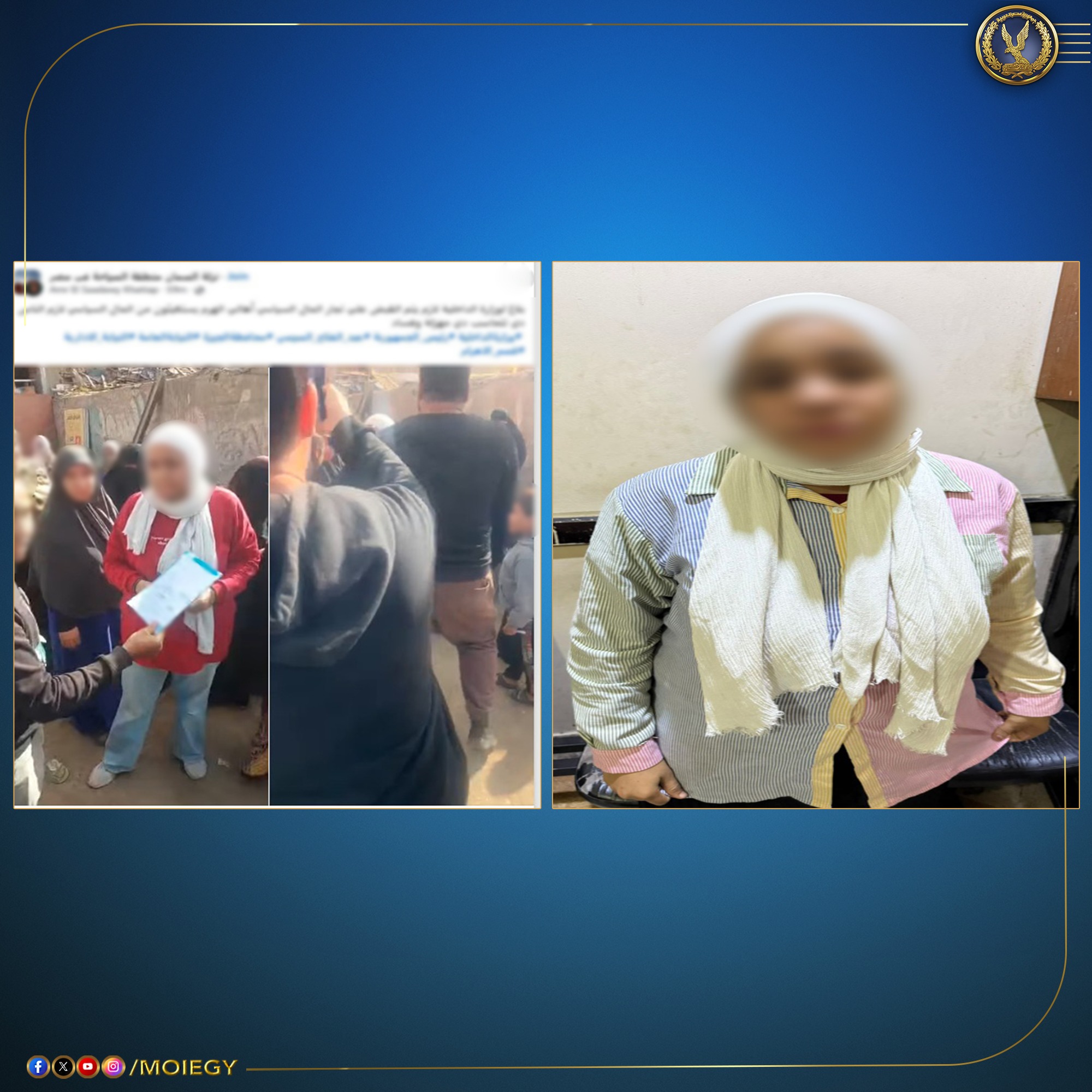 7-أعلنت وزارة الداخلية أنه فى إطار متابعة سير العملية الإنتخابية فى إطار متابعة سير العملية الإنتخابية .. فقد تمكنت الخدمات الأمنية المعنية بتأمين إحدى الدوائر الإنتخابية بدائرة مركز شرطة الأقصر من ضبط (إحدى السيدات) بمحيط الدائرة ، وبحوزتها عدد من البطاقات الشخصية الخاصة ببعض المواطنين ، ومبالغ مالية تمهيداً لتوزيعها على الناخبين حال ترددهم على دوائرهم الإنتخابية لدفعهم للتصويت لصالح أحد المرشحين.