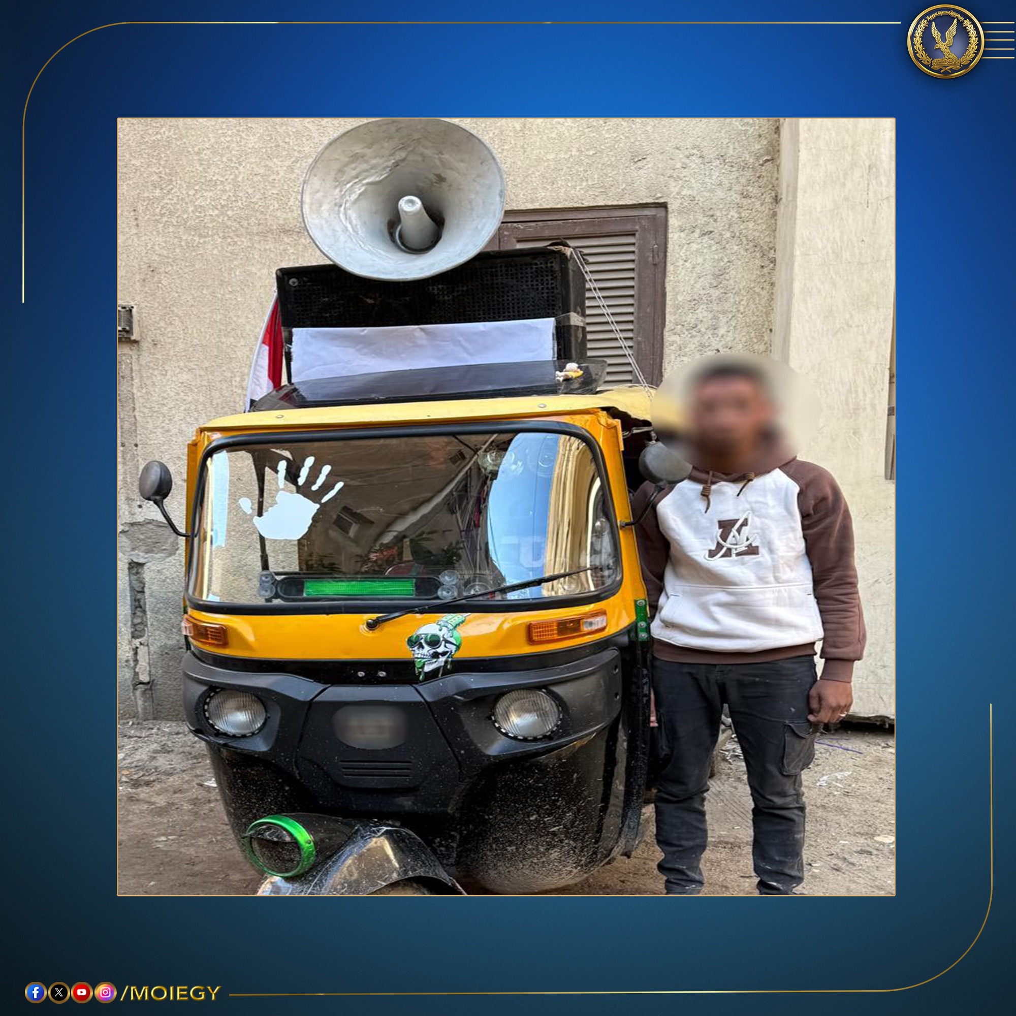 19-أعلنت وزارة الداخلية أنه فى إطار متابعة سير العملية الإنتخابية فى إطار متابعة سير العملية الإنتخابية..قد تمكنت الخدمات الأمنية المعنية بتأمين إحدى الدوائر الإنتخابية بدائرة مركز شرطة كوم حمادة بالبحيرة من ضبط (أحد الأشخاص) أثناء قيامه بالتجول بمحيط الدائرة بمركبة "توك توك" وبها مكبر صوت لحث الناخبين للإدلاء بأصواتهم لصالح أحد المرشحين.