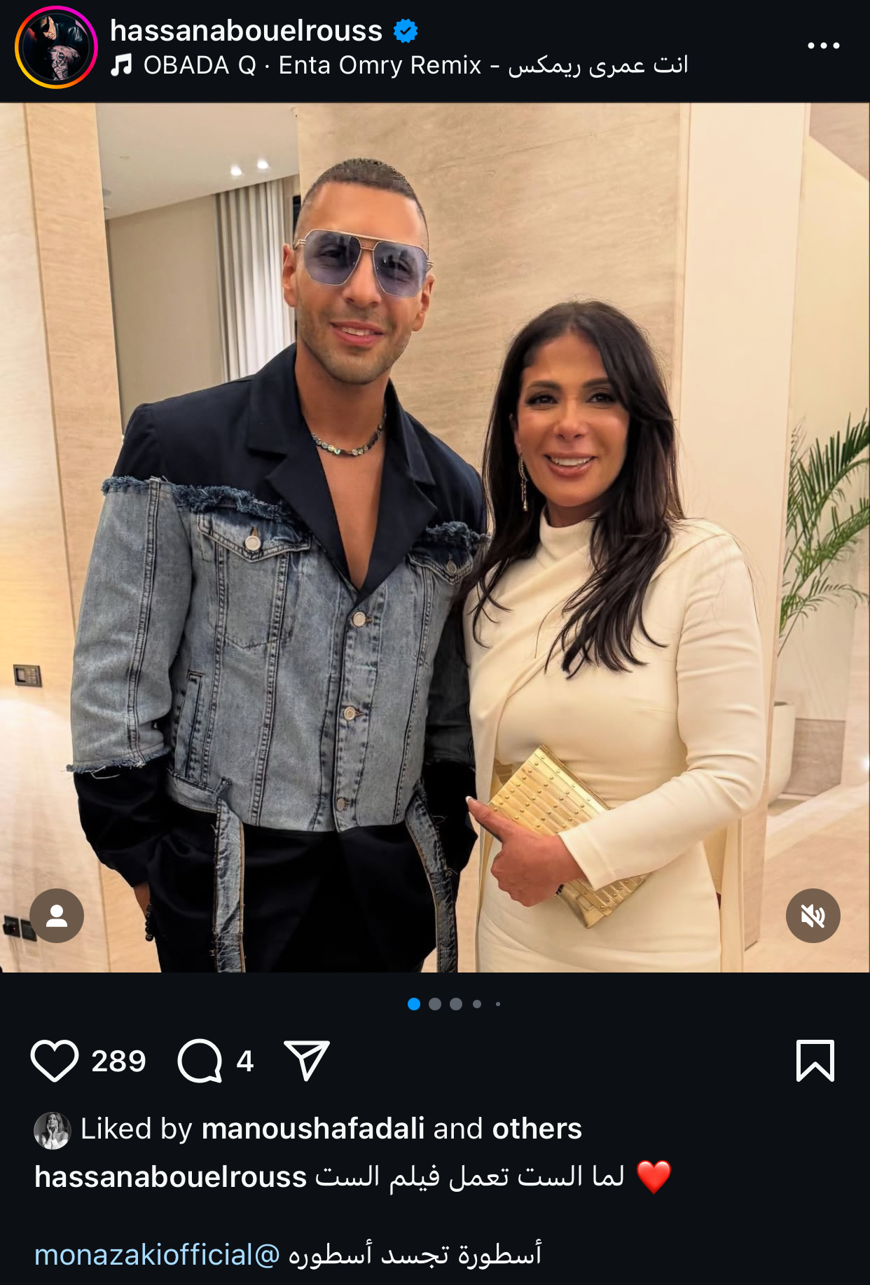 وكتب أبو الروس عبر حسابه الشخصي بموقع إنستجرام: "لما الست تعمل فيلم الست، أسطورة تجسد أسطورة".