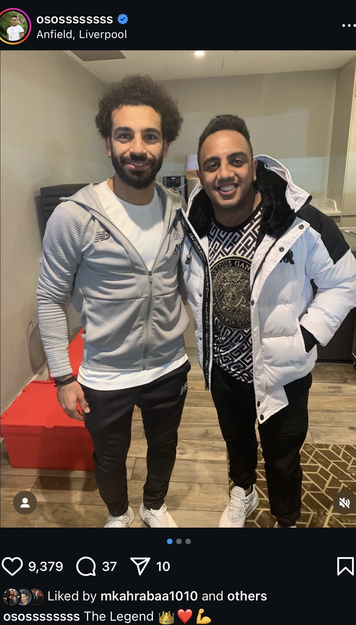 ونشر أوس أوس صورة تجمعه بمحمد صلاح عبر حسابه الشخصي بموقع إنستجرام وعلق عليها قائلًا: “الأسطورة”.
