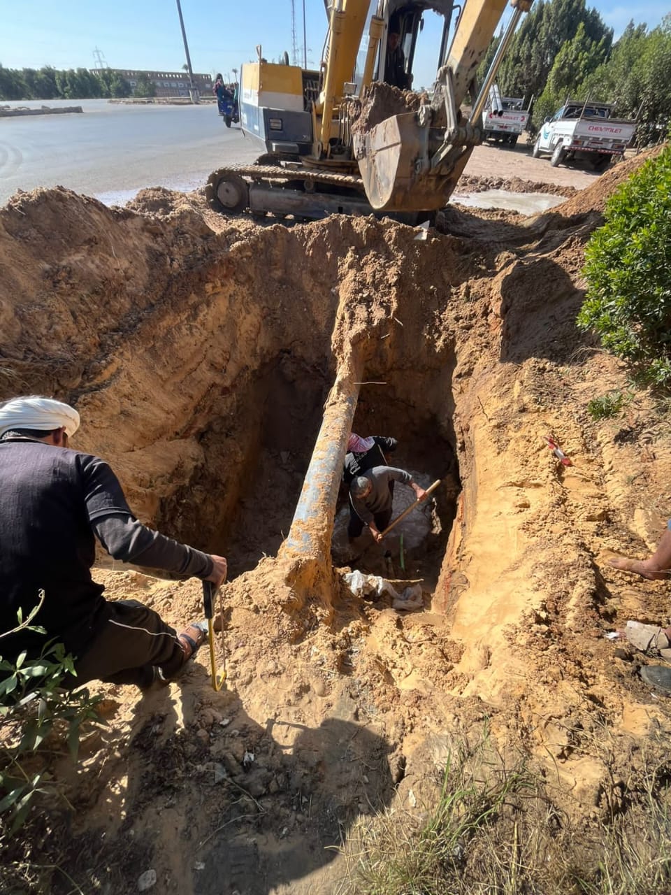 كما تم اصلاح كسر مفاجئ في خط المياه الرئيسي قطر 8 بوصة علي طريق الإسماعيلية الصحراوى بقرية المنايف، وتم الانتهاء ايضا من اصلاح كسر مفاجئ في خط مياه قطر 4 بوصة بمنطقة العمار بقرية سرابيوم، واصلاح كسر مفاجئ في خط قطر 280 مم طرد محطة ابوعارف القديمة بمحافظة السويس، كما تم اعمال الاصلاح في خط مياه قطر 6 بوصة بجوار مبني الارشاد بقرية التقدم بالقنطرة شرق.