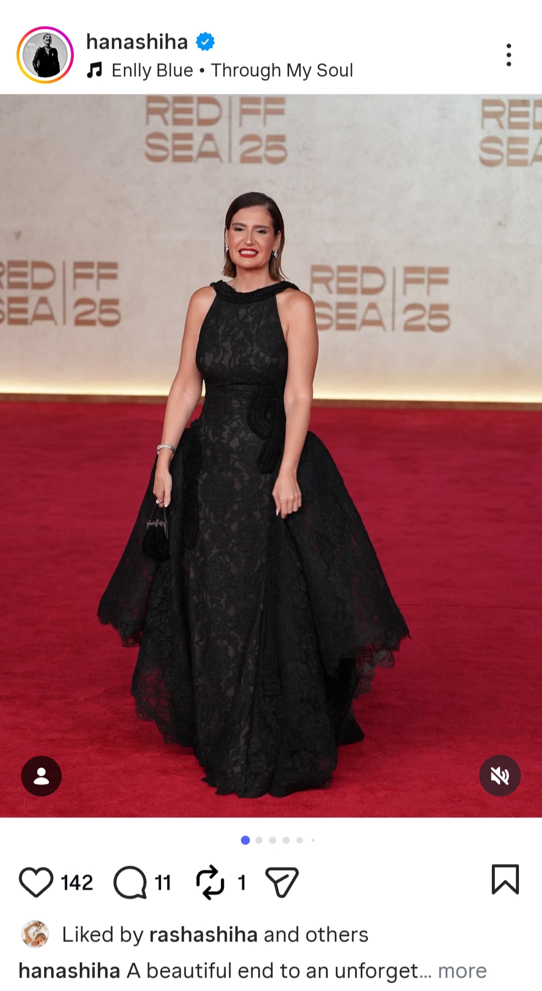 وظهرت هنا شيحة بإطلالة جذابة لافتة مرتدية فستان أسود ذا تصميم مميز، وحازت الصورة على إعجاب متابعيها.