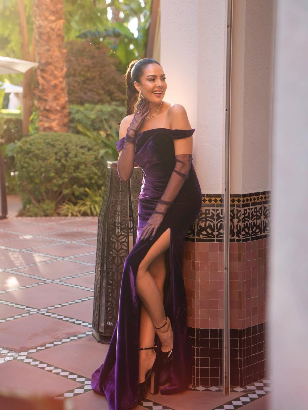 نشرت الفنانة الشابة نينا مغربي مجموعة من الصور خلال مشاركتها في مهرجان مراكش السينمائي في دورته الـ22، إذ خطفت الأنظار بإطلالتها الأنيقة مرتديةً فستانًا مخمليًا باللون البنفسجي الملكي بتصميم أوف شولدر يبرز جمالها ورشاقتها، فيما اعتمدت مكياجًا بلمسات بسيطة من الألوان الهادئة.