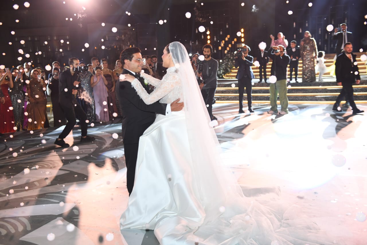 وظهرت ابنة محمد هنيدي ترقص مع زوجها وسط حالة من الفرحة والبهجة لدي الجميع.