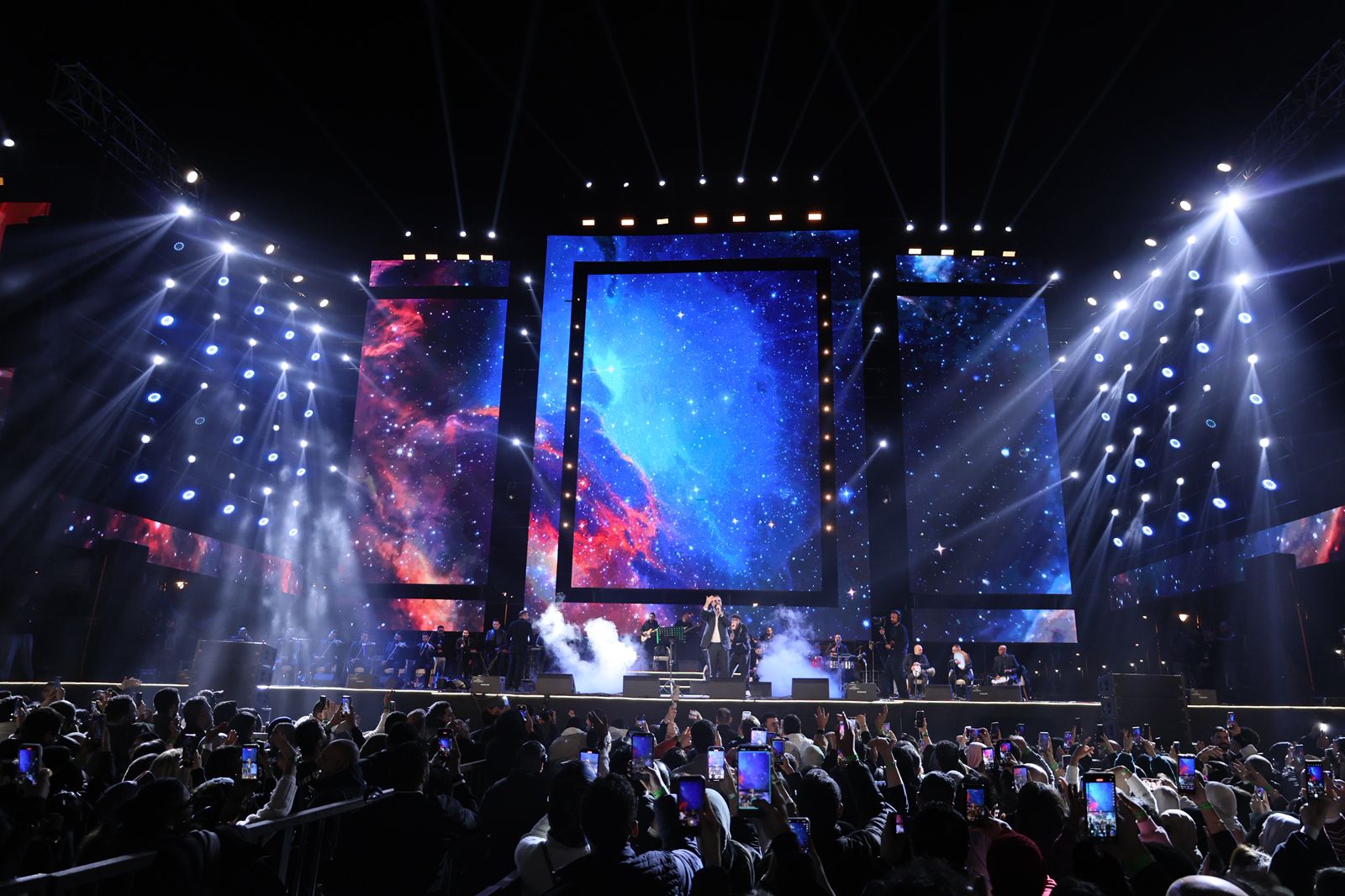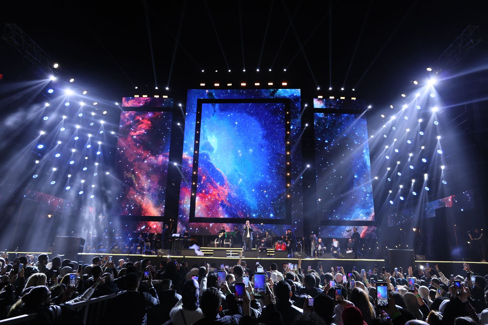 وقدم النجوم خلال الحفل مجموعة من أشهر أعمالهم التي تفاعل معها الجمهور بشكل لافت، حيث غنى وائل جسار رائعته "غريبة الناس" التي رددها معه الحضور بصوت واحد، بينما أشعل بهاء سلطان الأجواء بأغنيته الشهيرة "قلبك يا حول الله"، أما النجم مدحت صالح فقد قدم واحدة من أكثر أغانيه ارتباطا بالجمهور وهي "كوكب تاني" وسط تفاعل كبير وتصفيق مستمر.