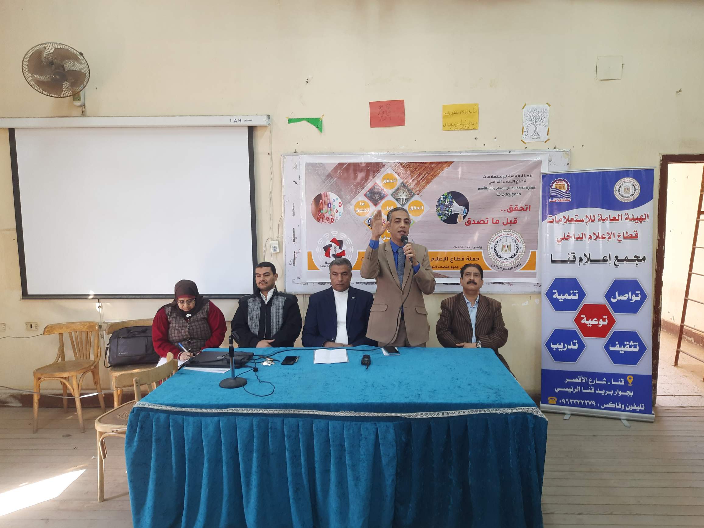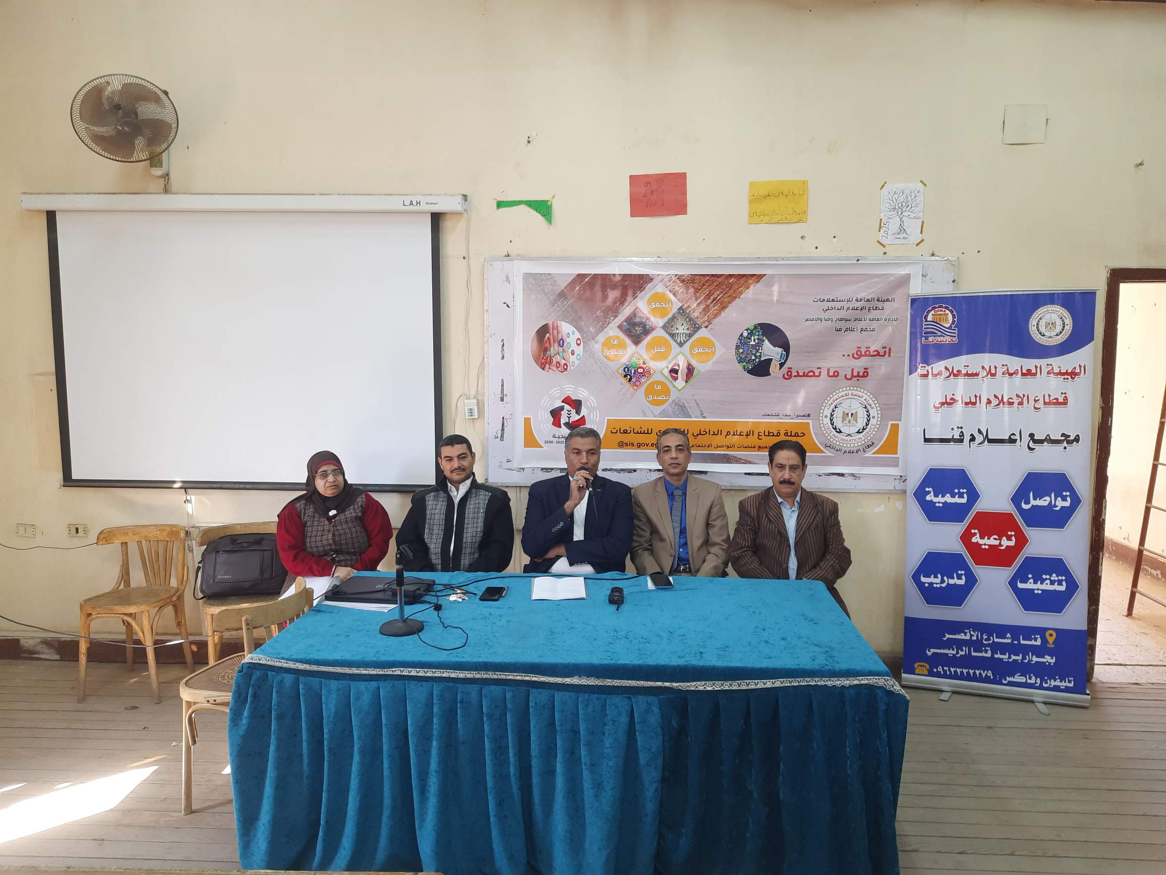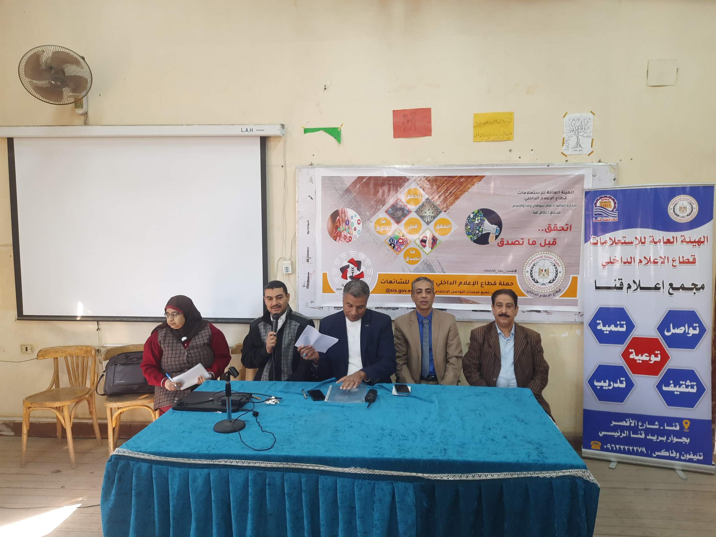 نظم مجمع إعلام قنا ندوة تثقيفية بعنوان" المشروعات القومية واقع عملي ضد الشائعات" بمقر المعهد المتوسط للخدمة الاجتماعية بقنا،ضمن الحملة الإعلامية التي أطلقها قطاع الإعلام الداخلي تحت شعار "اتحقق قبل ما تصدق" برعاية الكاتب الصحفى ضياء رشوان، رئيس الهيئة العامة للاستعلامات، وبتوجيهات الدكتور أحمد يحيى، رئيس قطاع الإعلام الداخلى بالهيئة.