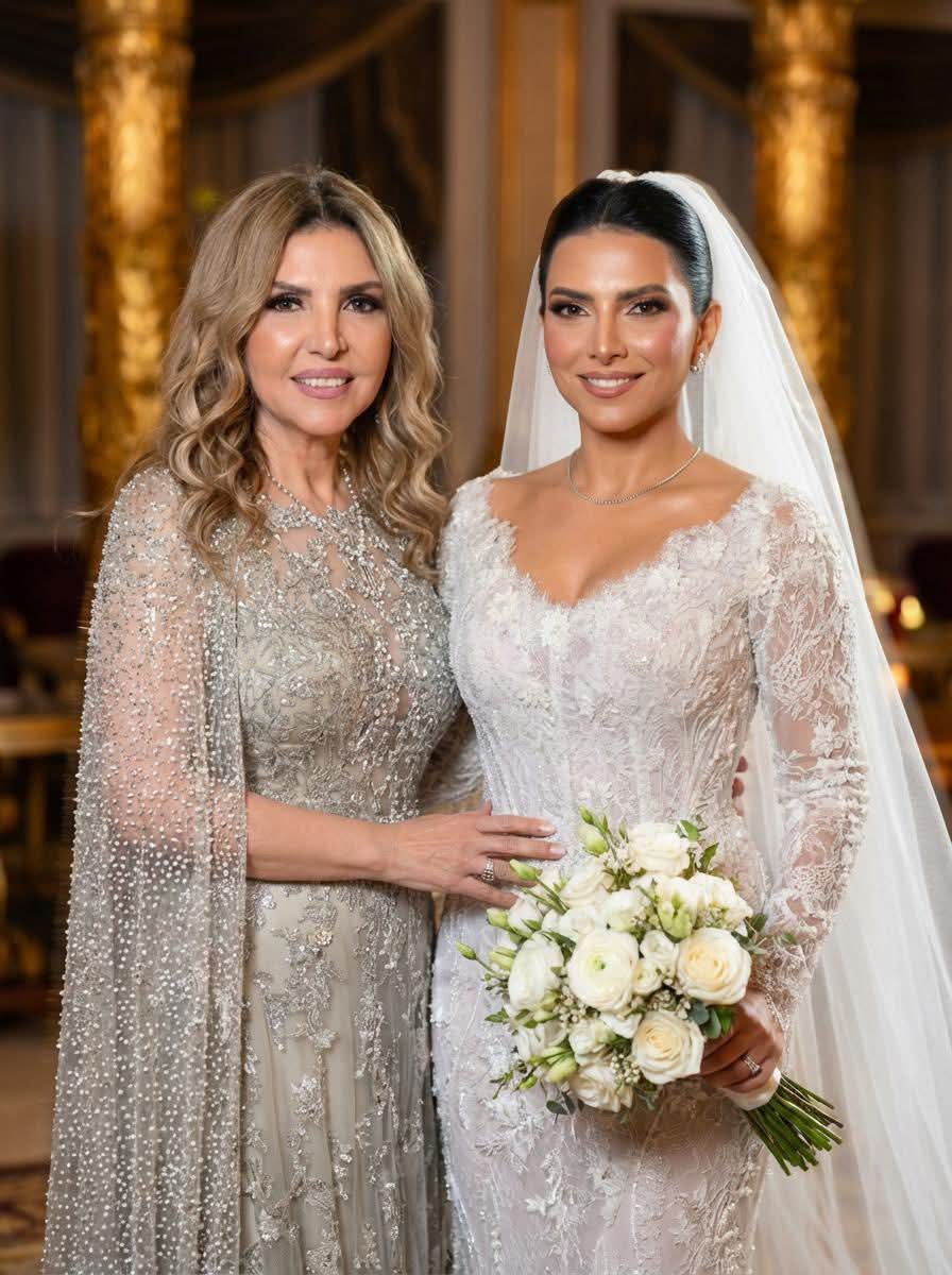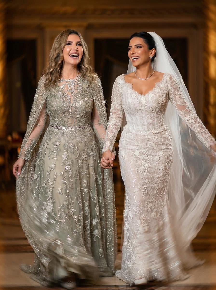 أقيم الإحتفال داخل قصر محمد علي بالمنيل وتألقت العروس ووالدتها الفنانة الكبيرة نادية مصطفى كالأميرات بفستانين من تصميم هاني البحيري.