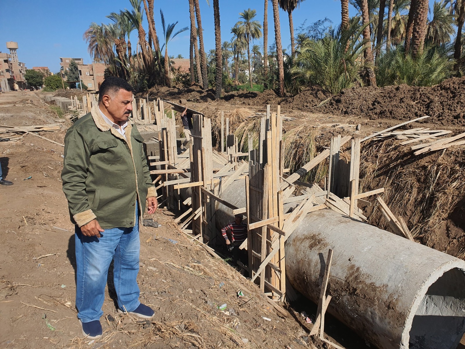 وشملت المتابعة أعمال استكمال تغطية ترعة جهينة بطول 200 متر، إلى جانب متابعة الأعمال الجارية بمشروع الصرف الصحي بقرية عنيبس، ومحطة صرف صحي نجع عبد الكريم.