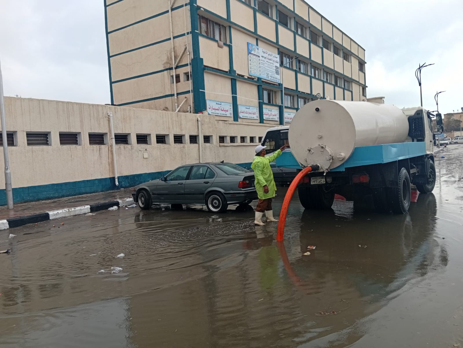 فور تساقط الأمطار …انتشار سيارات ومعدات شفط وسحب مياه الأمطار بجميع الأحياء