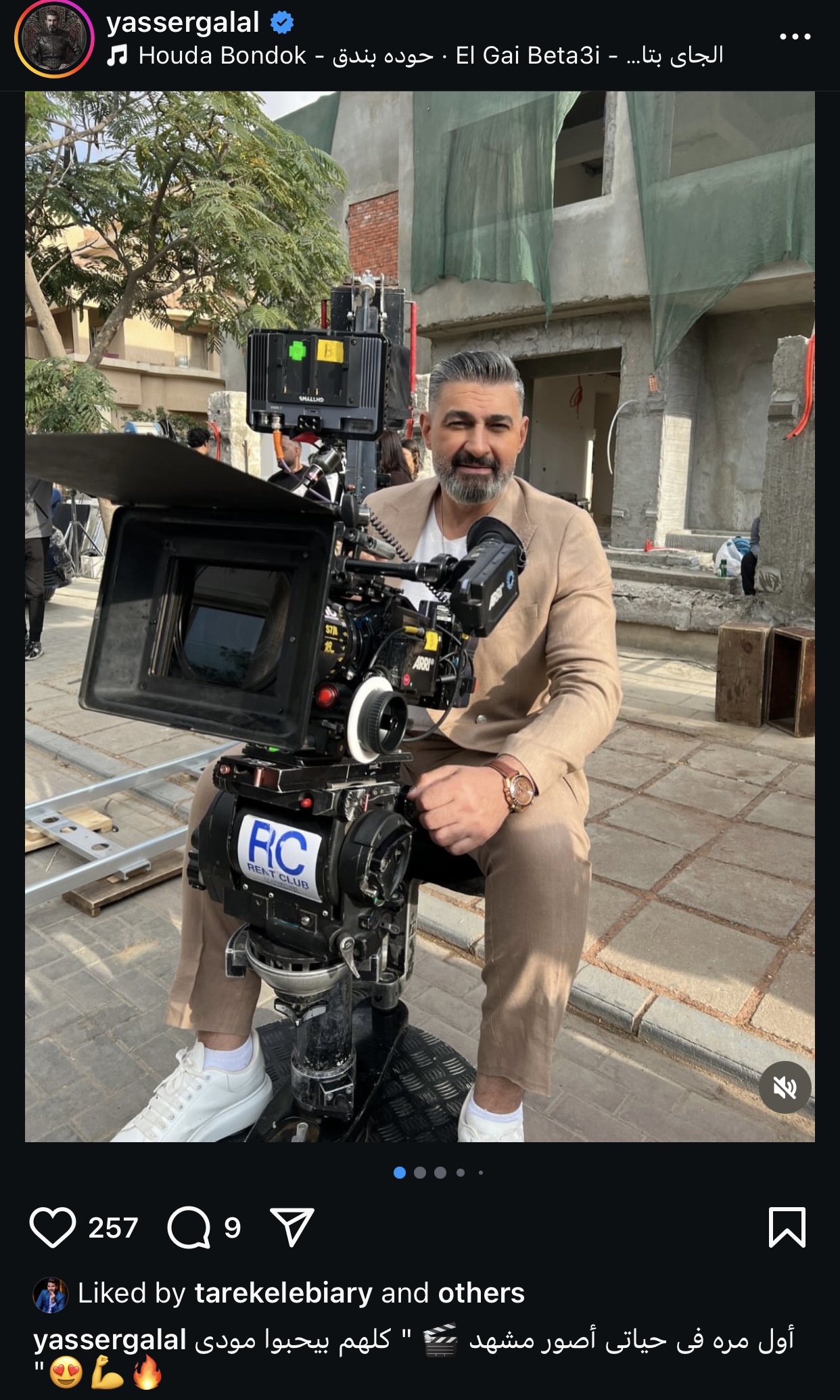 شارك الفنان ياسر جلال صورا من كواليس تصوير مسلسله كلهم بيحبوا مودي، عبر حسابه الشخصي بموقع إنستجرام وعلق على الصور قائلاً: "أول مرة في حياتي أصور مشهد، كلهم بيحبوا مودي".