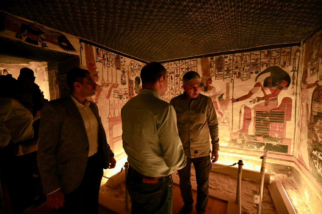 هذا بالإضافة إلى زيارة مقبرة الملكة نفرتاري للوقوف على آخر مستجدات الأعمال وما آلت إليه نسب الرطوبة بها، خاصة في ضوء عمل اللجنة المتخصصة التي تم تكليفها مؤخرا من قبل الأمين العام للمجلس الأعلى للآثار لقياس نسبة الرطوبة بالمقبرة، في ضوء دراسة إمكانية إعادة فتحها وفقا لقواعد محددة لعدم تأثرها بزيادة أعداد الزائرين.