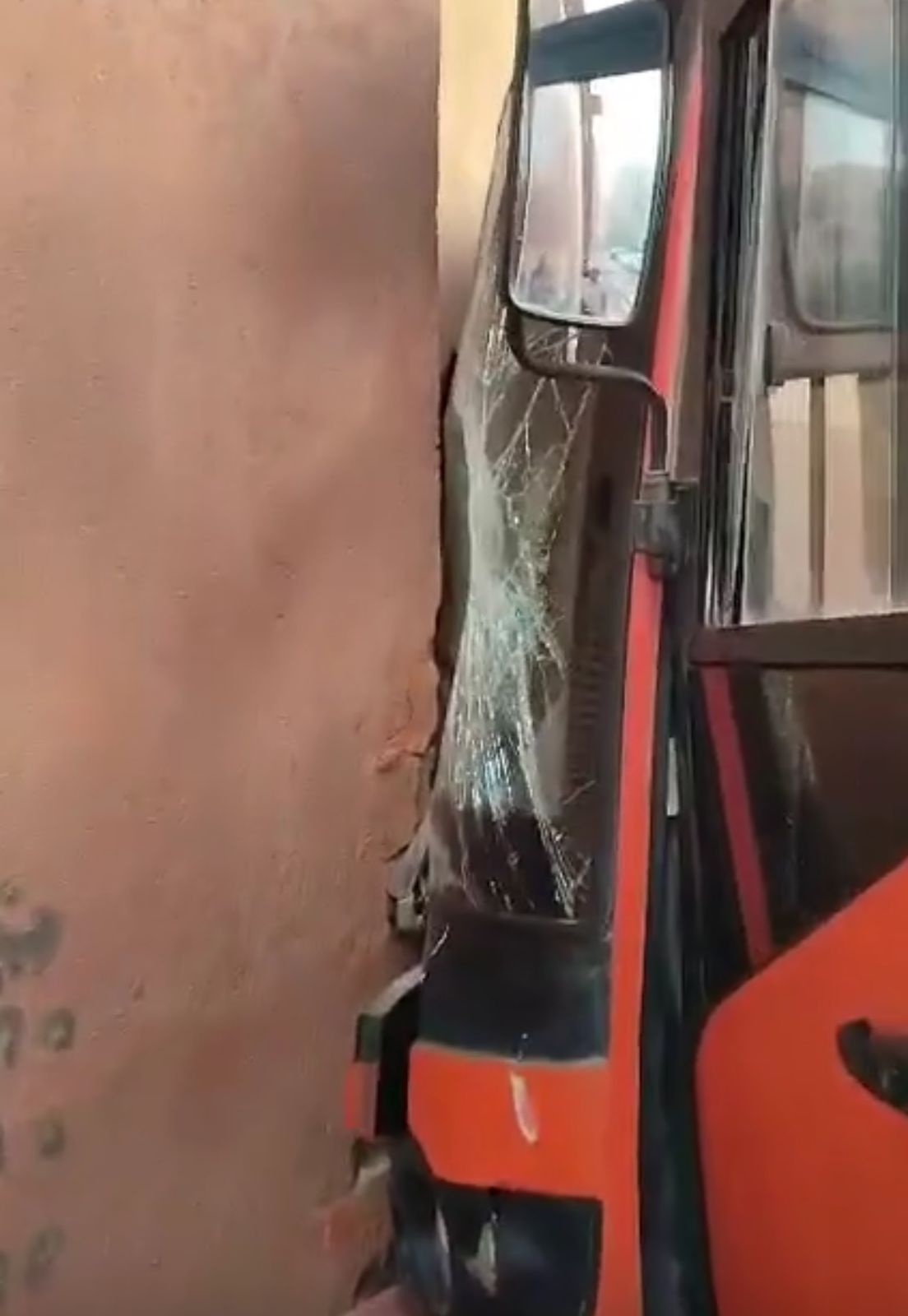 وبالانتقال والفحص تبين إصطدام الأتوبيس بحائط منزل بالطابق الأرضى بعقار بمدينة بدر مما تسبب فى تصدعه، وتلفيات بالسيارة دون وقوع إصابات بين التلاميذ .