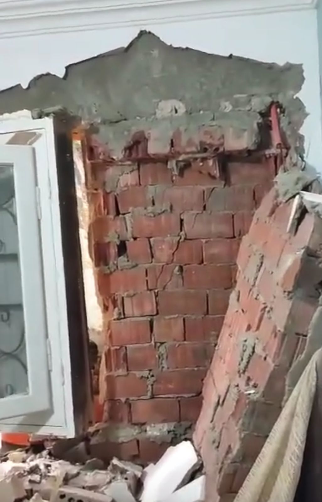 أقتحم أتوبيس الدرسة منزل لأسرة بالطابق الأرضى بمدينة بدر، مما تسبب فى تحطم حائط احدى الغرف بالمزل .