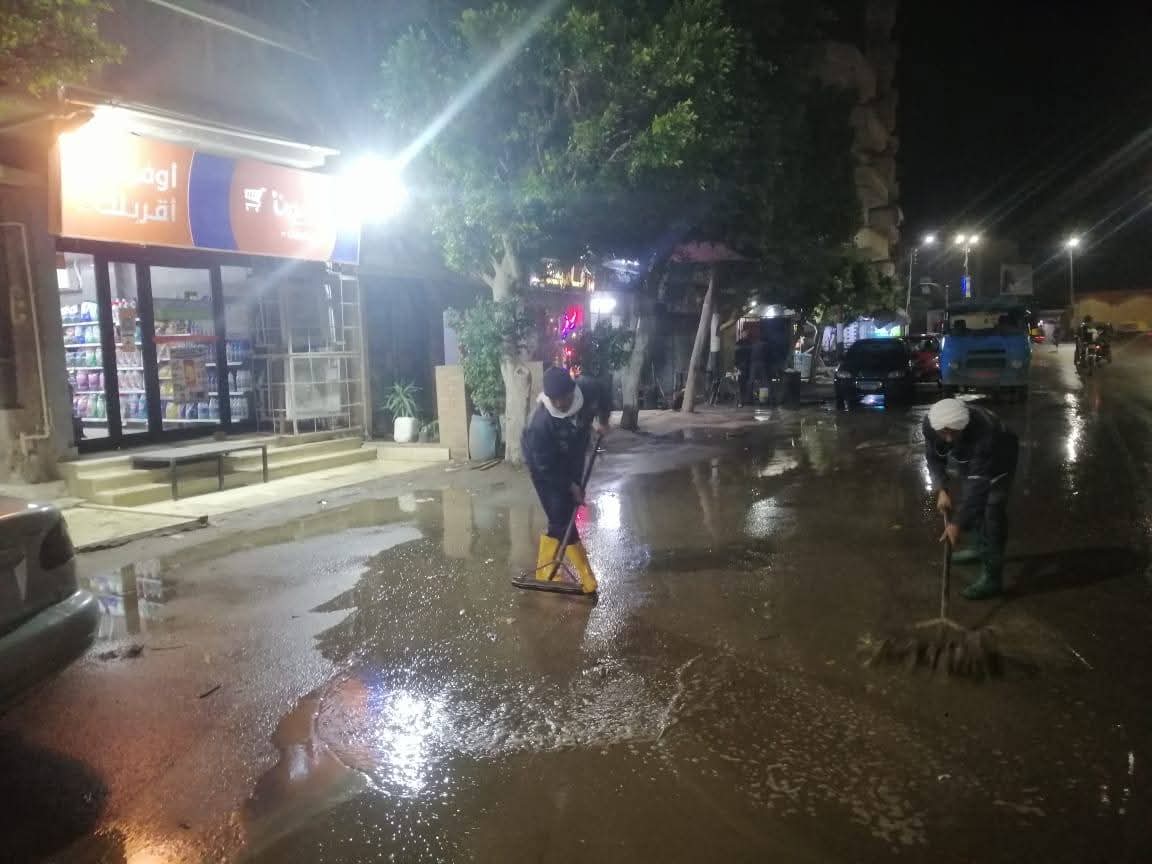وجرى فتح صفايات الأمطار، والدفع بسيارات الكسح، لرفع التجمعات أولاً بأول، ورفع كل مخلفات المطر، وذلك إثر عدم الاستقرار في الأحوال الجوية وسقوط الأمطار.