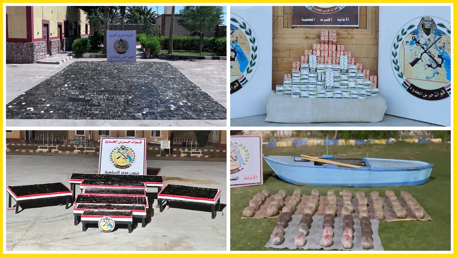 وردا على سؤال بشأن جهود قوات حرس الحدود خلال الفترة الأخيرة، إن الجهود أسفرت خلال الفترة الماضية عن تحقيق العديد من النجاحات والنتائج الإيجابية على كافة الاتجاهات الاستراتيجية للدولة حيث تم ضبط ما يزيد على (1500) واقعة تهريب أسفرت عن ضبط كمية كبيرة من المواد المخدرة (أنواع) ومساحات كبيرة من الزراعات المخدرة وما يزيد على 3 ملايين قرص مخدر لحماية المجتمع المصري من خطر المواد المخدرة على أبناء الوطن.