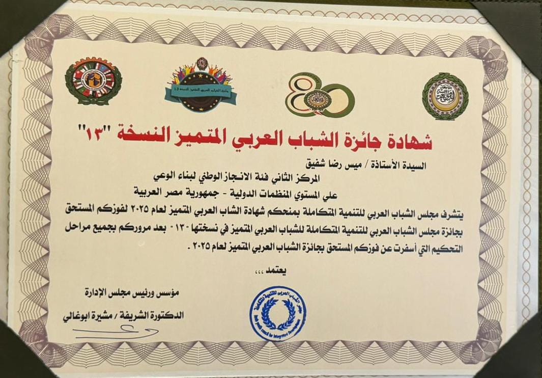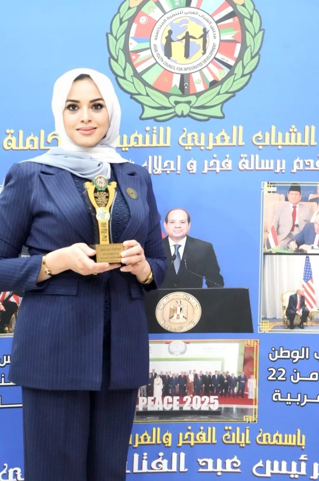 وجاء هذا التكريم خلال الحفل الذي نظمه مجلس الشباب العربي للتنمية المتكاملة لتكريم الشباب العربي المتميز، بحضور لفيف من المسؤولين والشخصيات العامة، إلى جانب نخبة من المكرّمين من مختلف الدول العربية، وممثلي وسائل الإعلام.