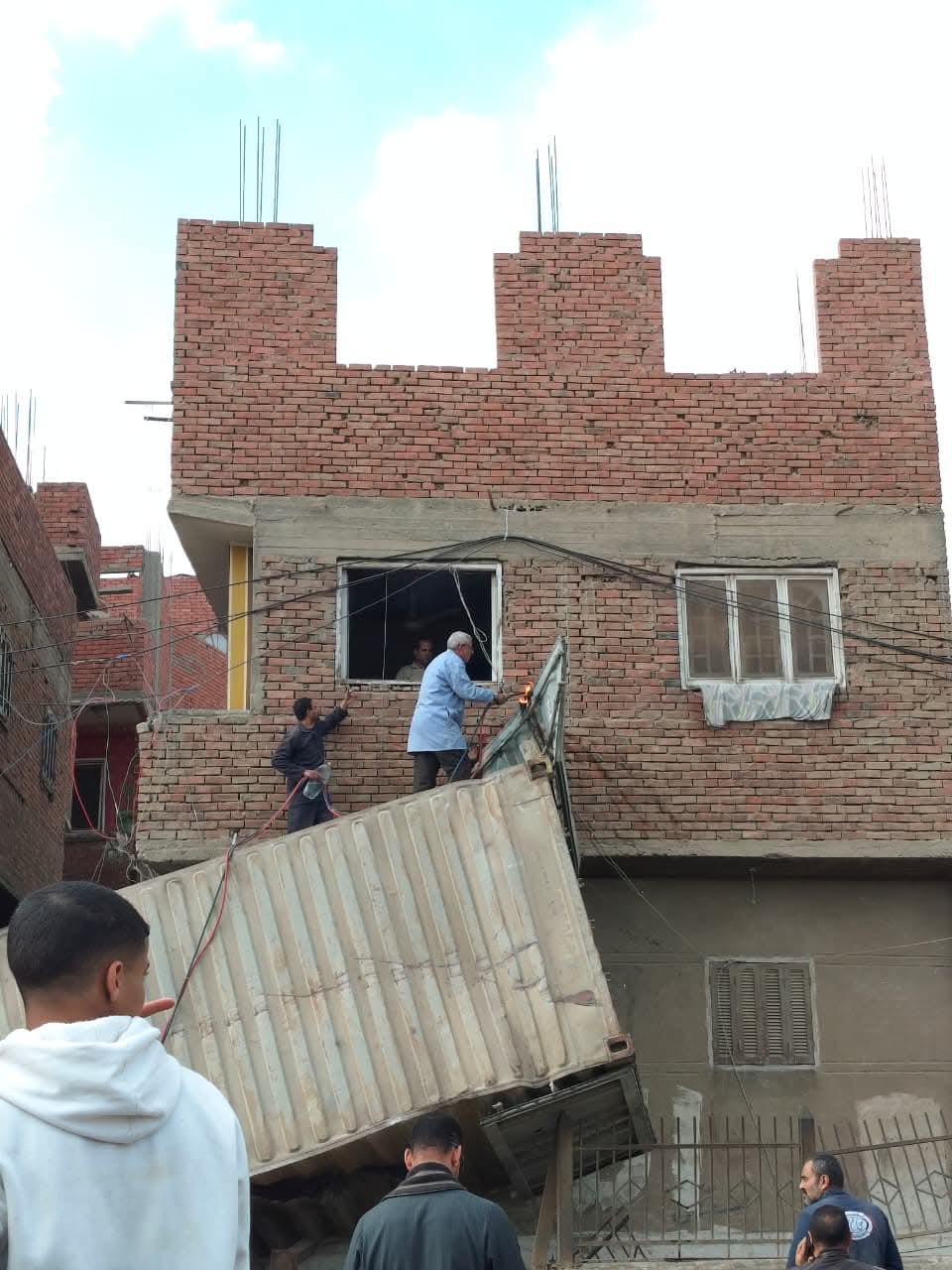 وتبين تضرر مبنی يضم دور أرضى وأول وثانى علوى عبارة عن حوائط حاملة باسم صلاح الدين فهيم وهدى فهيم، حيث توجد به تلفيات عبارة عن كسر بالحائط الخارجى بالدور الأول العلوى وحدوث تصدع واختراق بالحائط والجزء المتضرر عشرة متر مسطح.